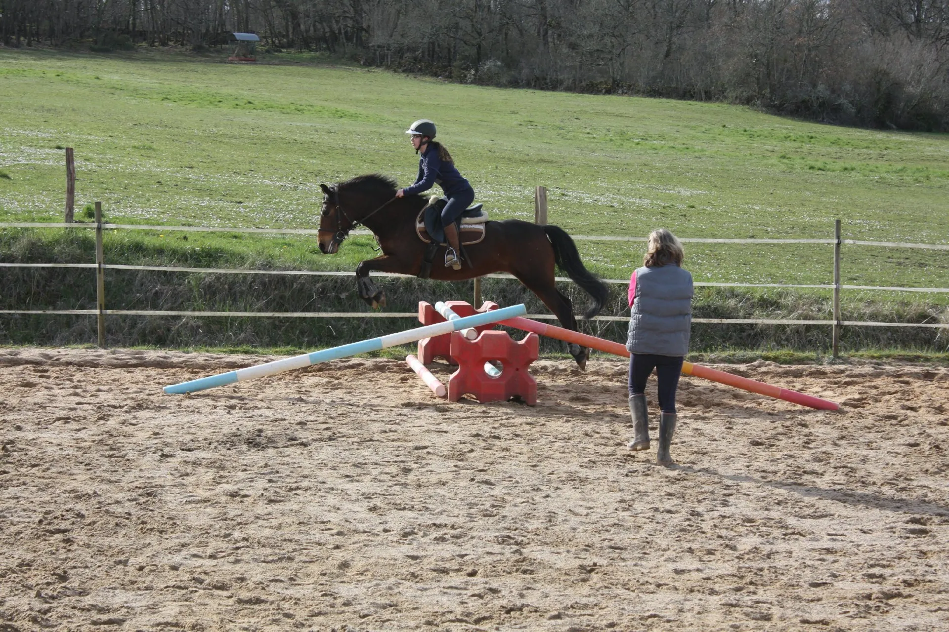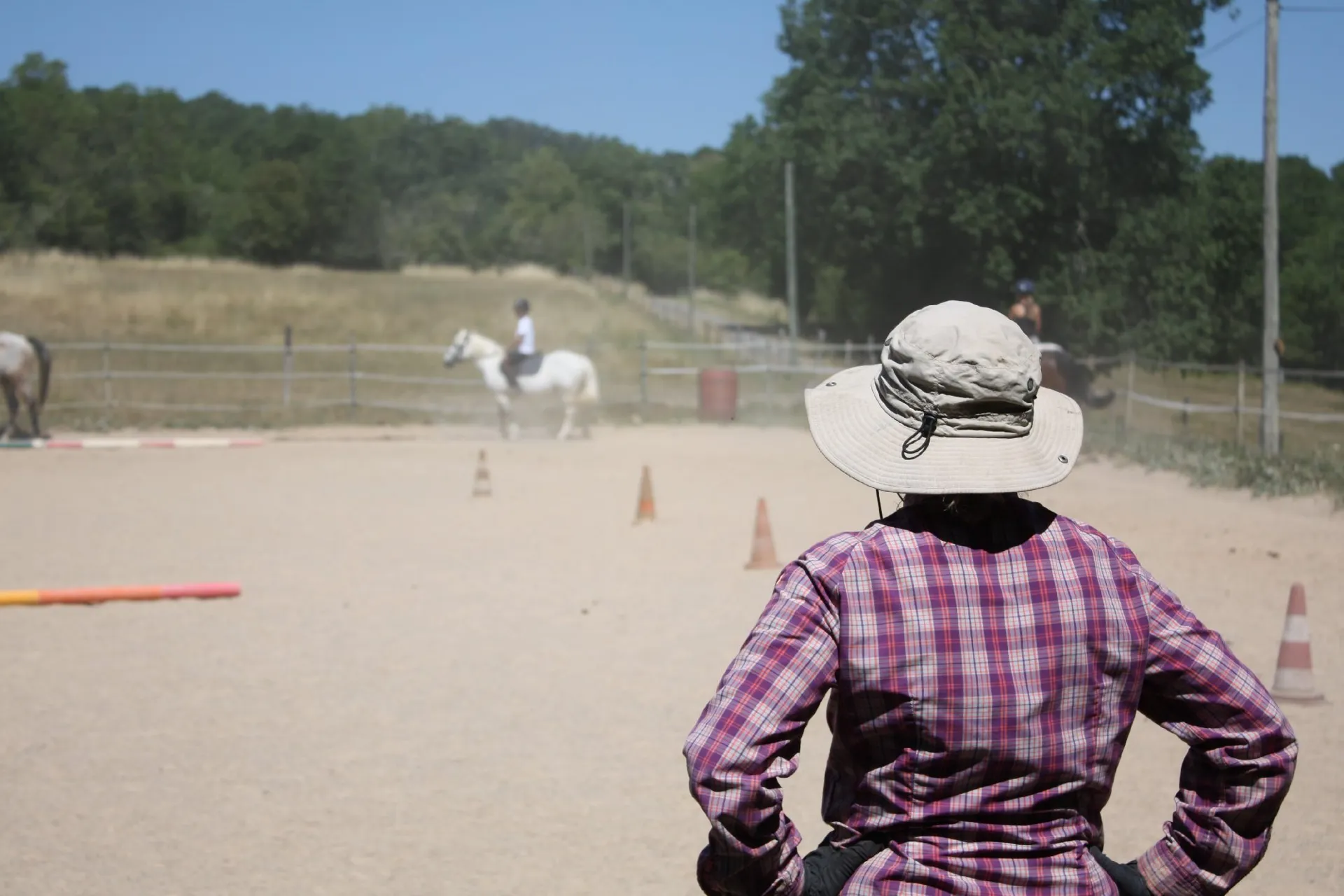 Équitation classique et éthologique (carrière, manège extérieur).