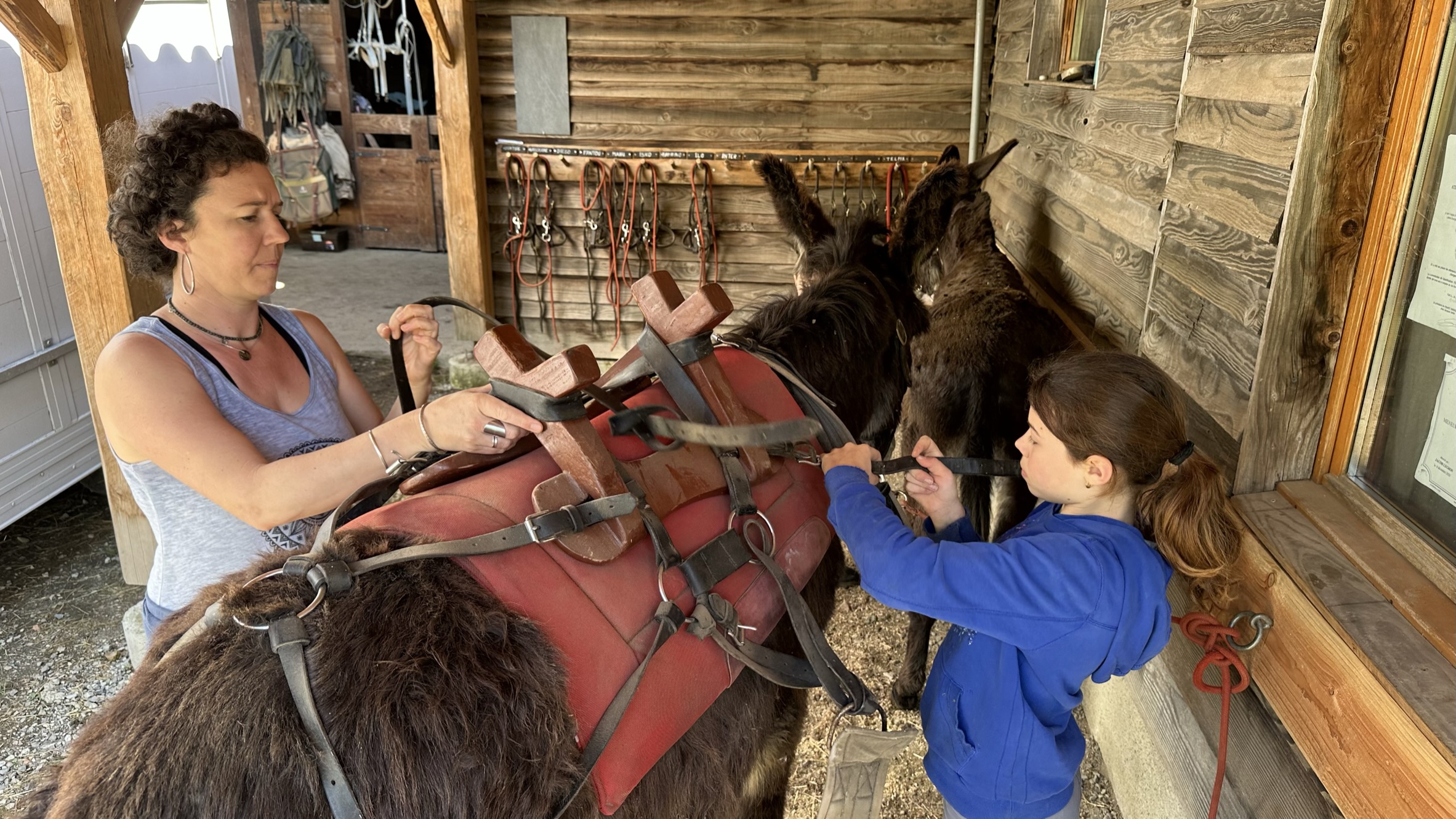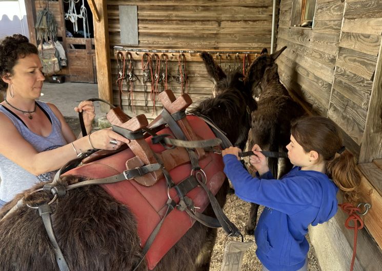 Sie verwenden Esel aus eigener Zucht für Wanderungen, die von einem Tag bis zu mehreren Tagen dauern können. Die Esel begleiten Sie auf der gesamten Route, um Ihre Sachen und/oder die Kinder zu tragen, wenn sie müde sind.