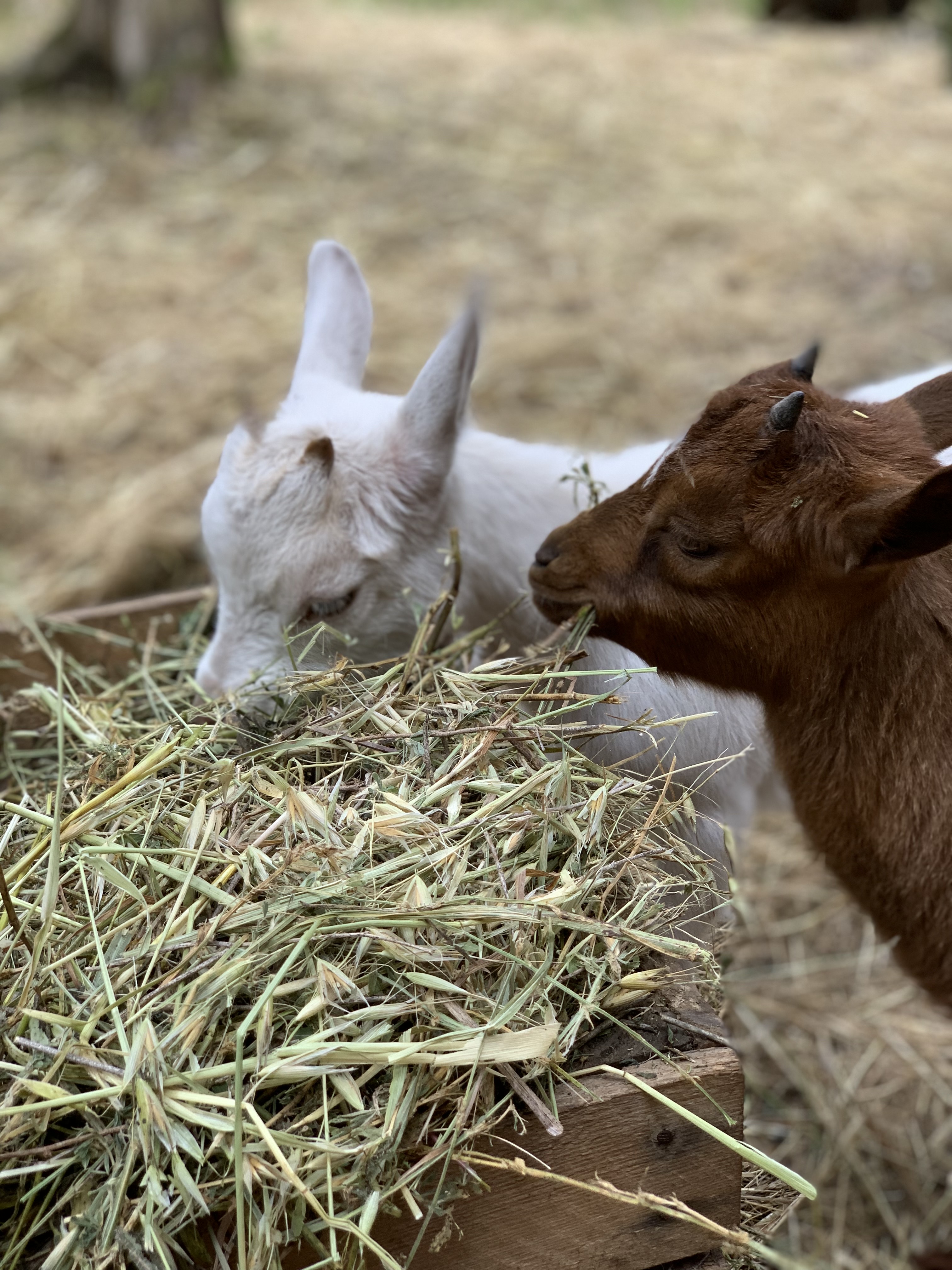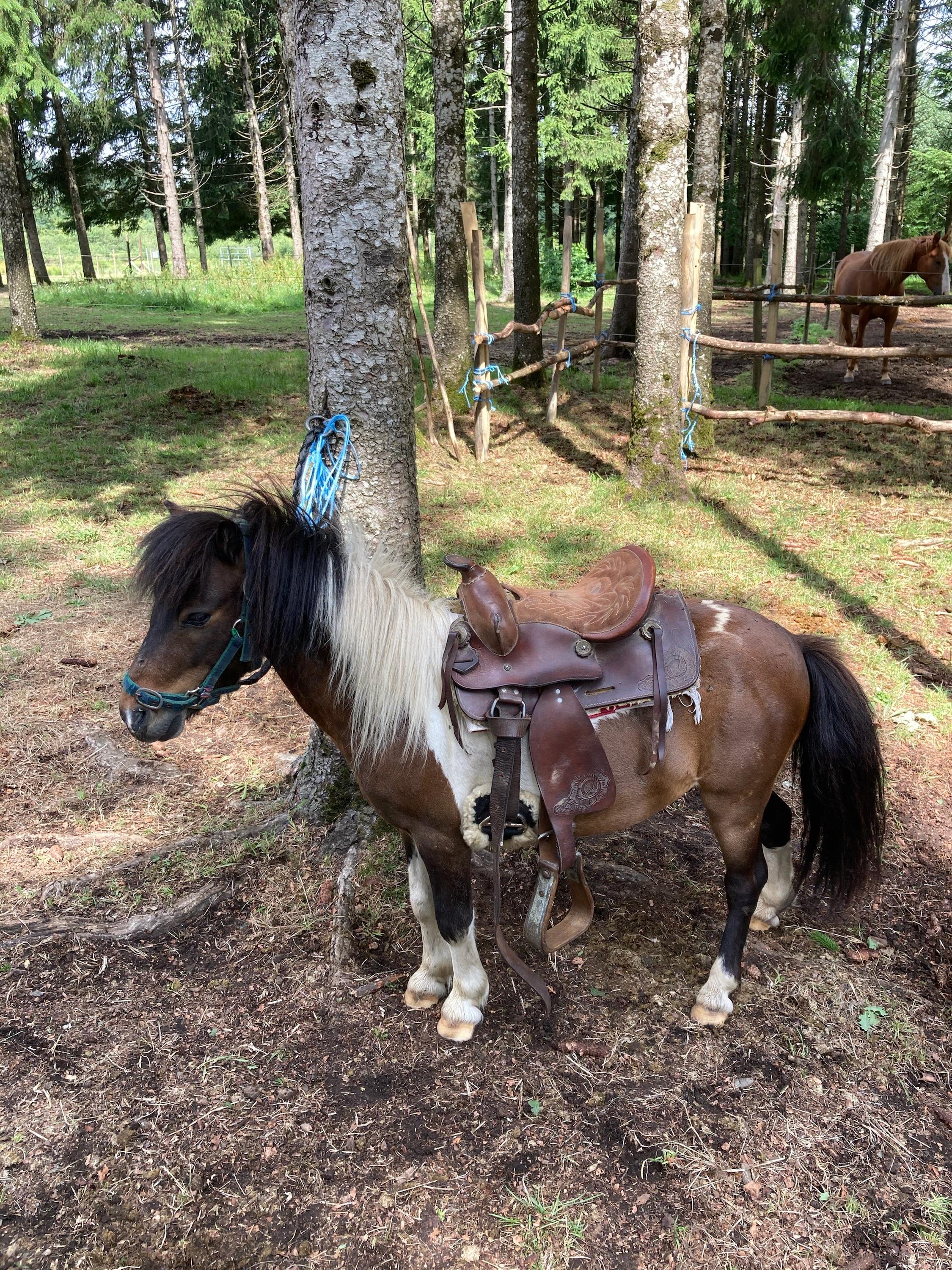 Nourrissage des animaux (poneys, chèvres naines, moutons et lapins angora), pansage des poneys et balade en mains, “petit travail” de rancher et goûter.