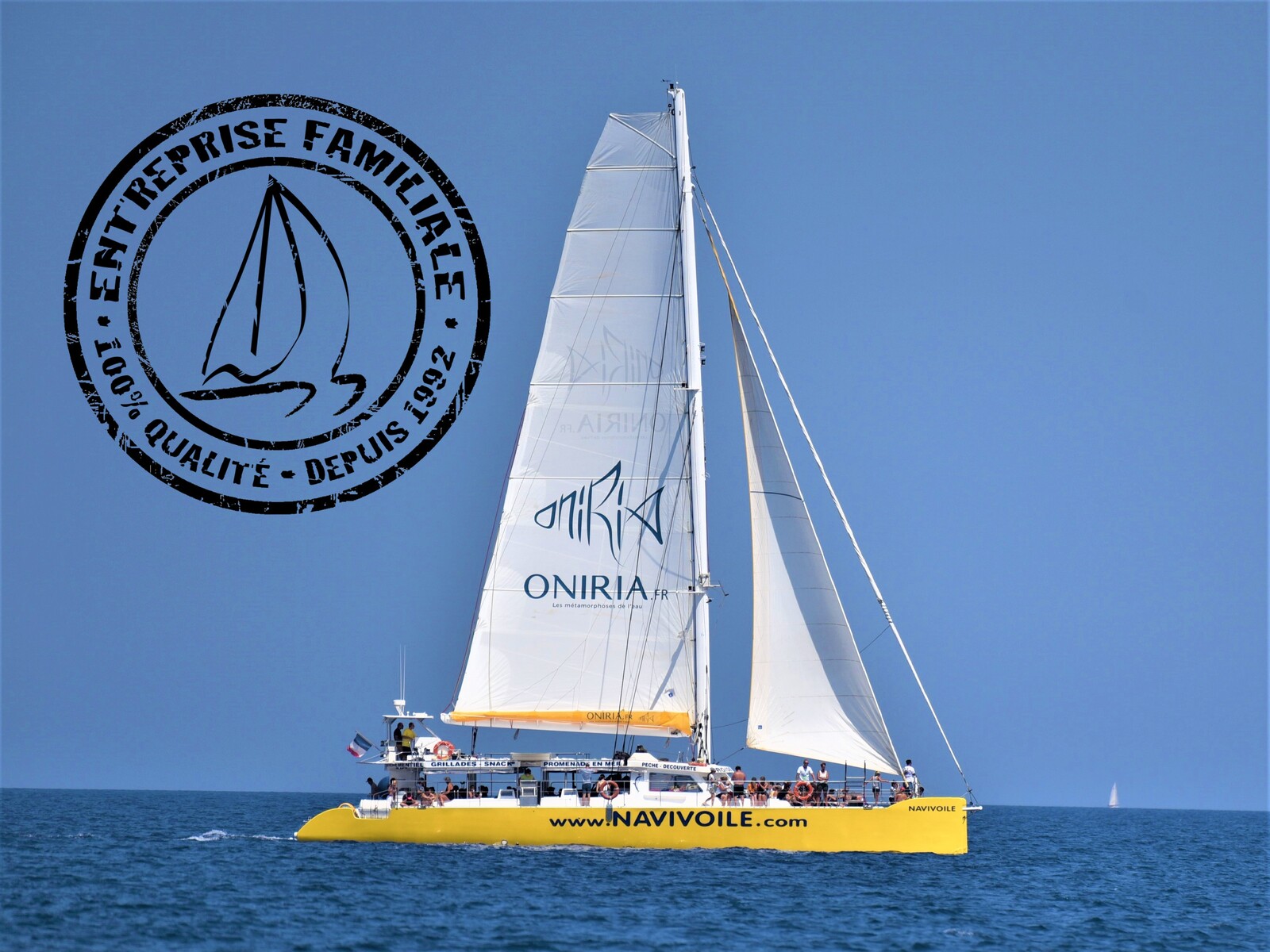 Maxi-Segelkatamaran, der aufgrund seiner umweltfreundlichen Antriebsart und seines Platzangebots (220 m²) einzigartig in Okzitanien ist. Sie suchen eine originelle Idee, um an der katalanischen Küste zu segeln? Dann gehen Sie an Bord unseres Katamarans (mit Besatzung). Seit 30 Jahren zeigen wir unseren Passagieren die verborgenen Schönheiten der Côte Radieuse und Vermeille auf der Meeresseite, in aller Ruhe und mit höchstem Komfort. Das Segeln in einer geselligen und entspannten Maxi-Katamaran-Atmosphäre wird für Sie kein Geheimnis mehr sein! Ab CANET EN ROUSSILLON oder PORT VENDRES bieten wir eine große Auswahl an Kreuzfahrten an: Grillen und Baden an der felsigen Küste, Wale und Delfine beobachten, Zwischenstopp in Collioure, Sonnenuntergang usw.