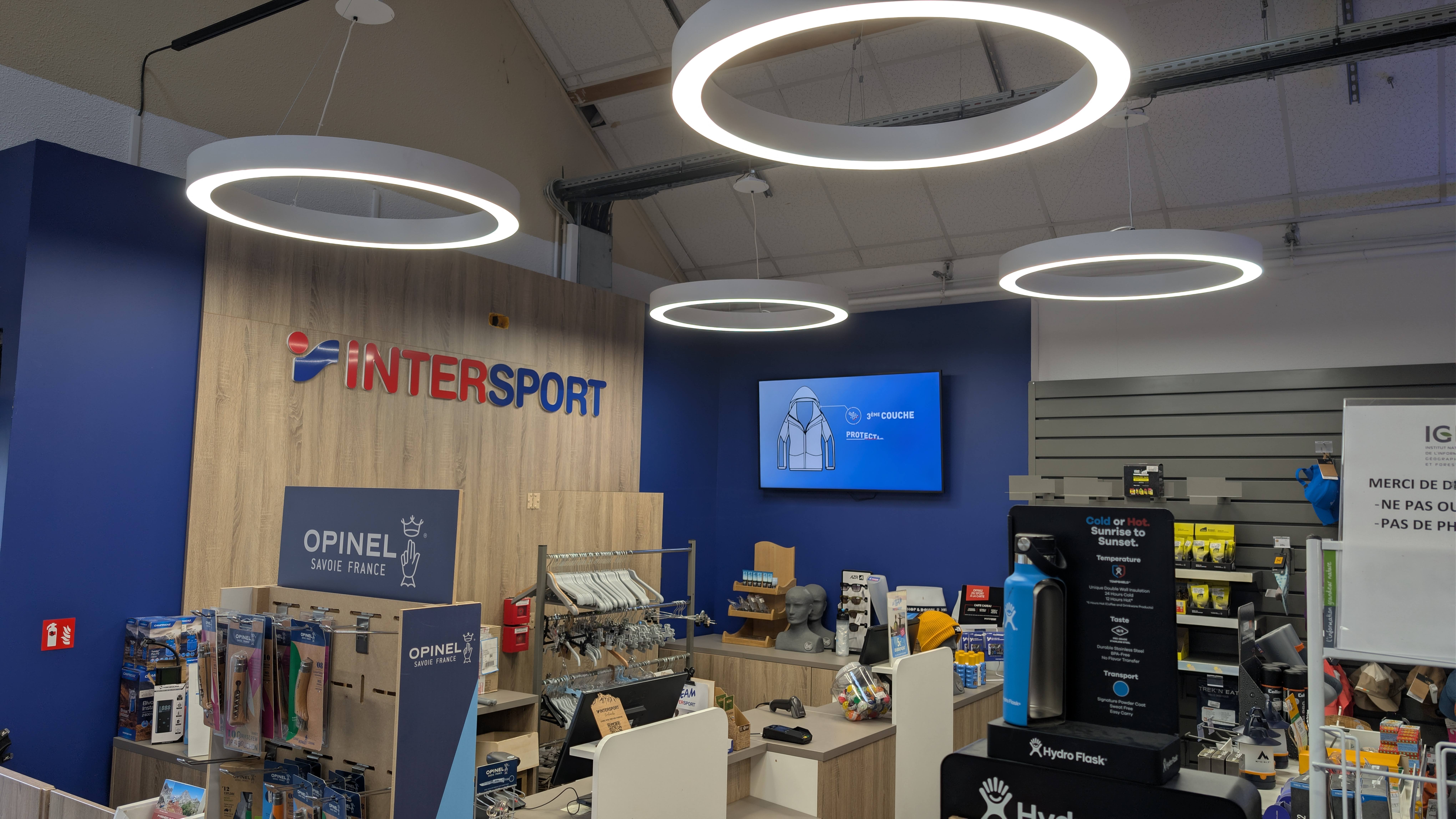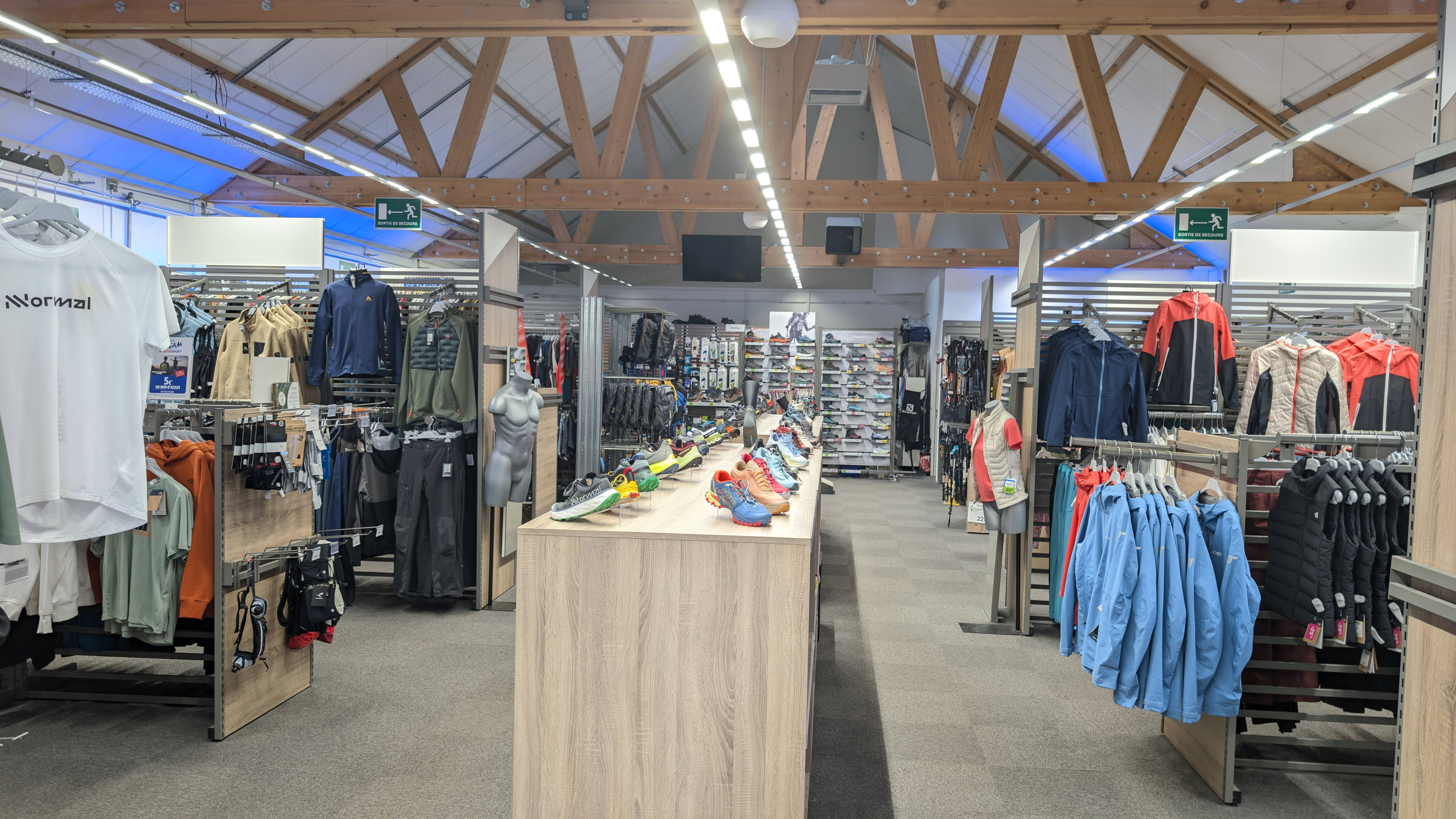 Ideal gelegen am Eingang des Dorfes, große Fläche von 400m²… Breites Angebot an Qualitätsprodukten mit garantierten INTERSPORT-Preisen!