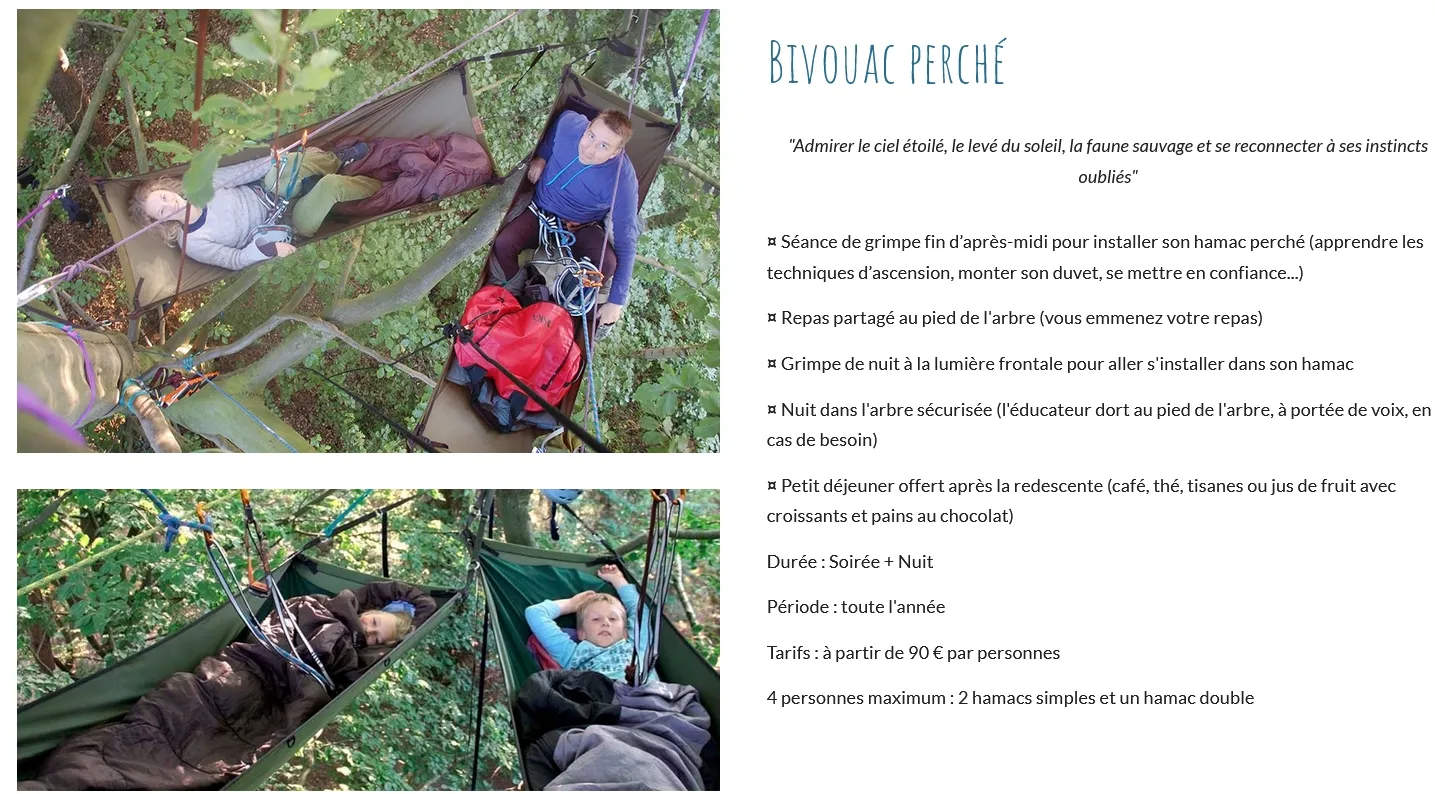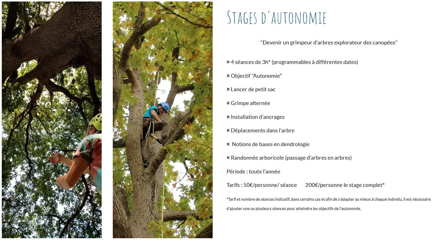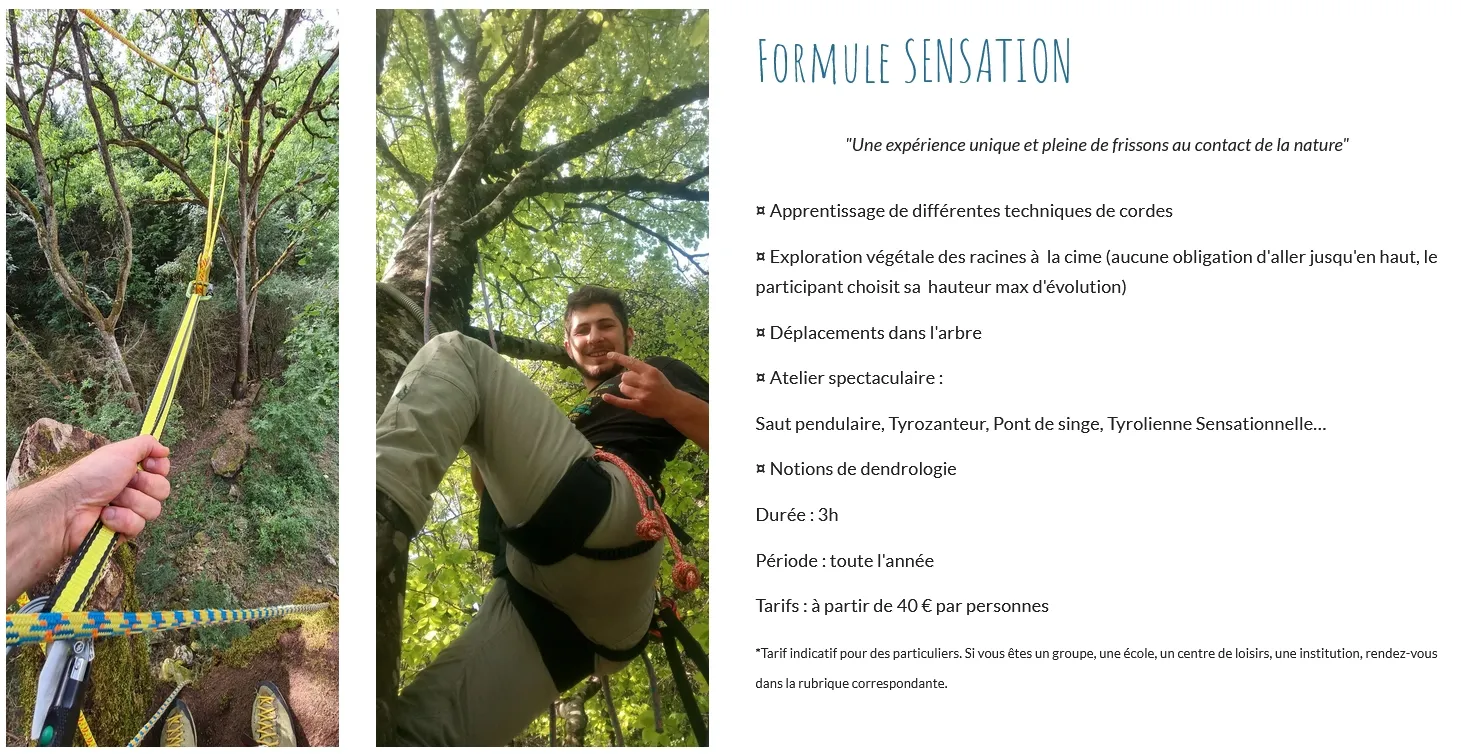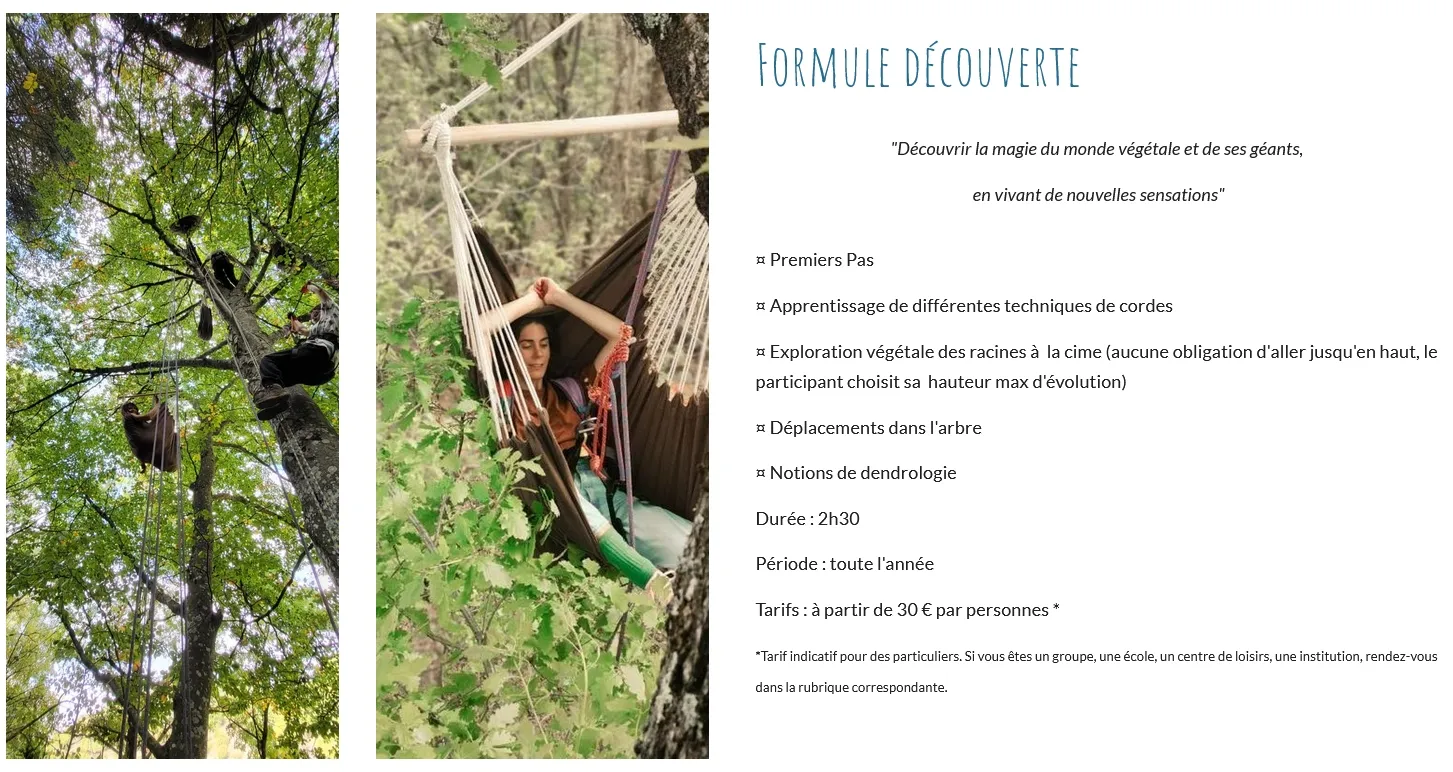 Unlike tree climbing courses, tree climbing is an ephemeral and itinerant activity, the ropes used are removed at the end of each activity in order to limit our impact as much as possible.