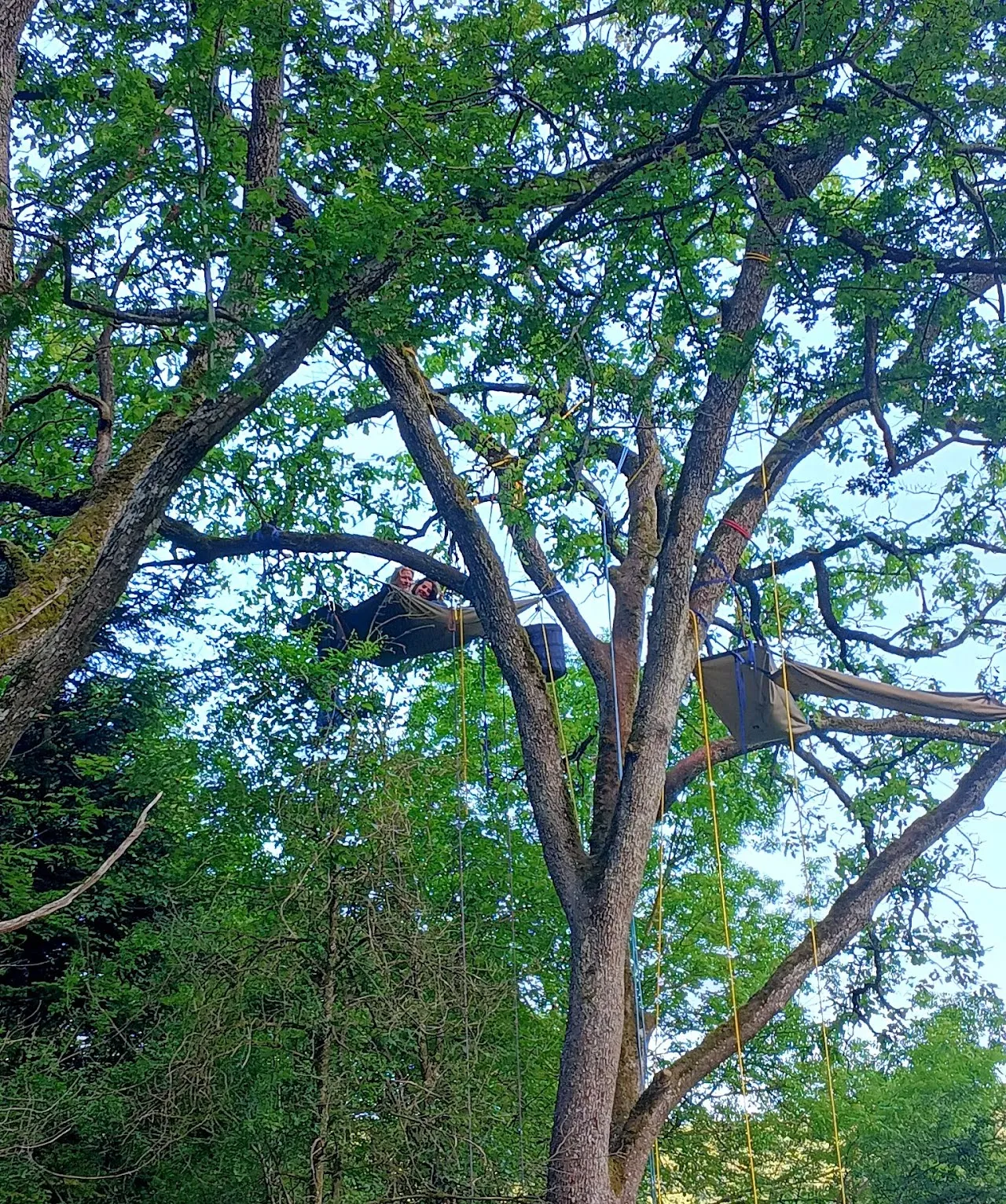 Secure night in the tree (the educator sleeps at the foot of the tree, within earshot, if necessary)