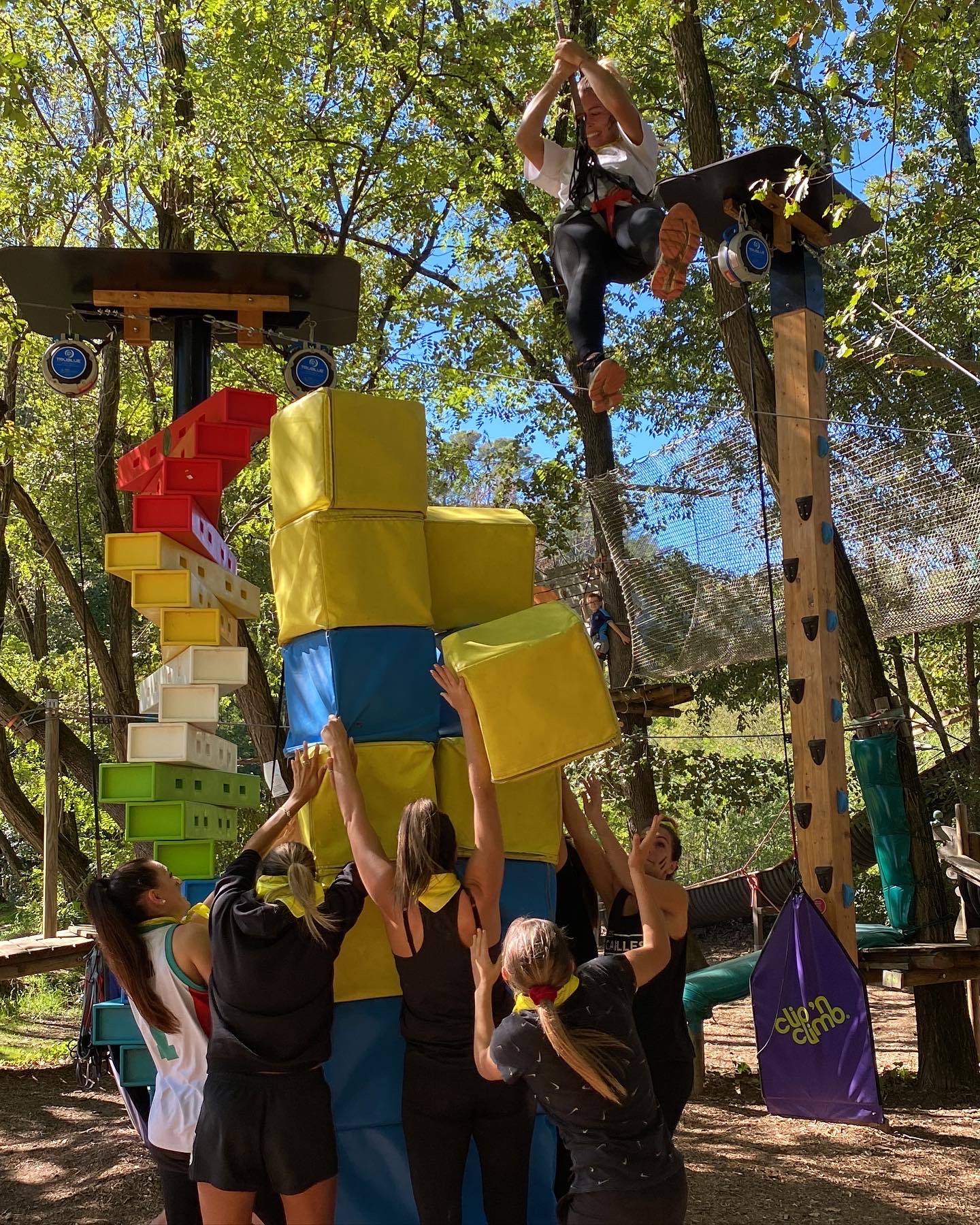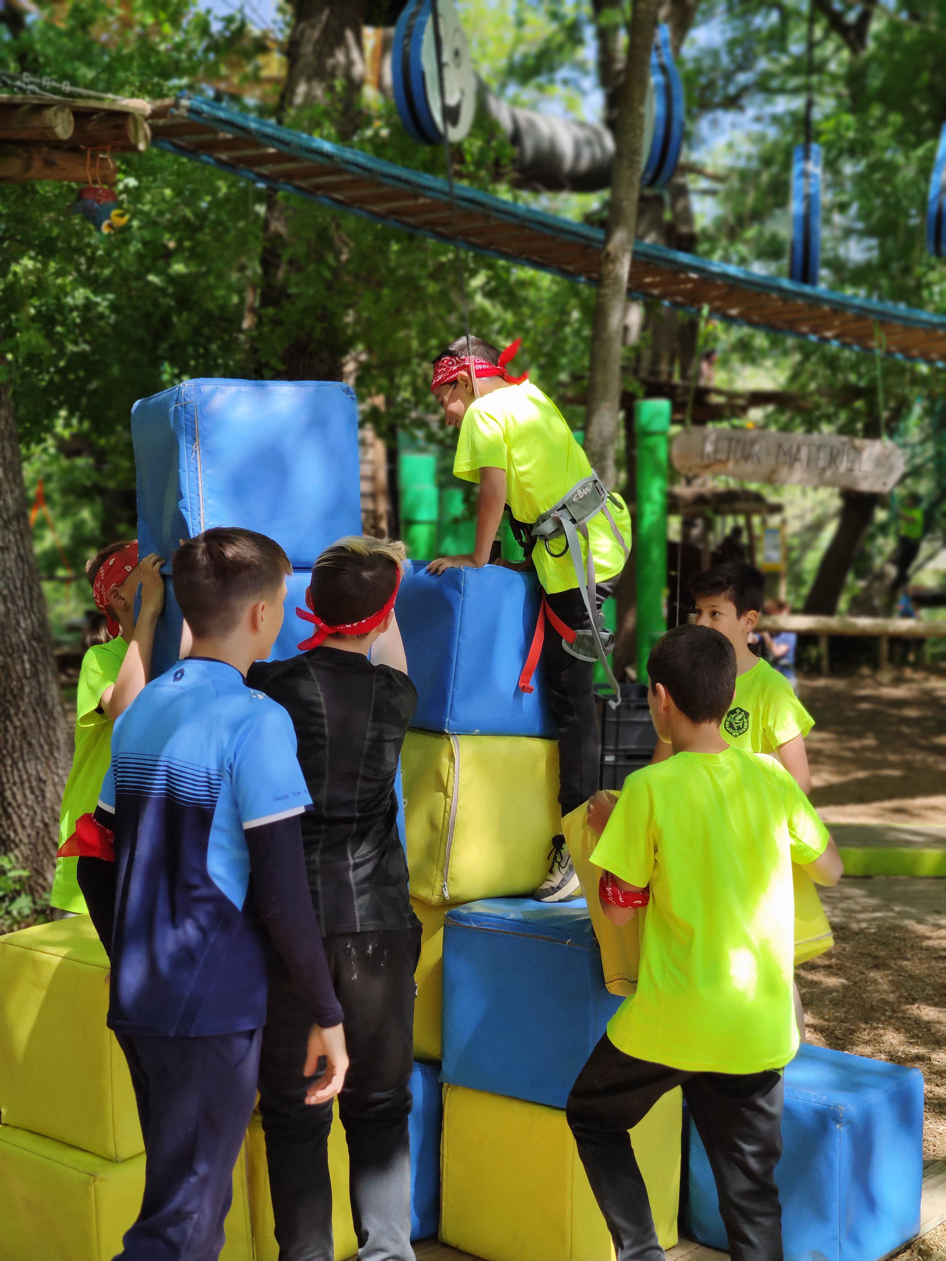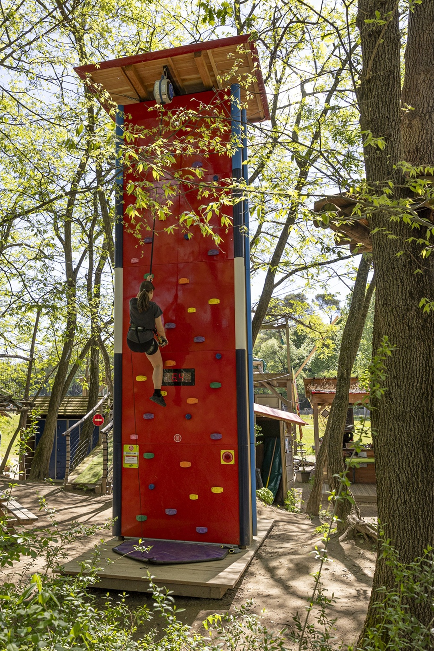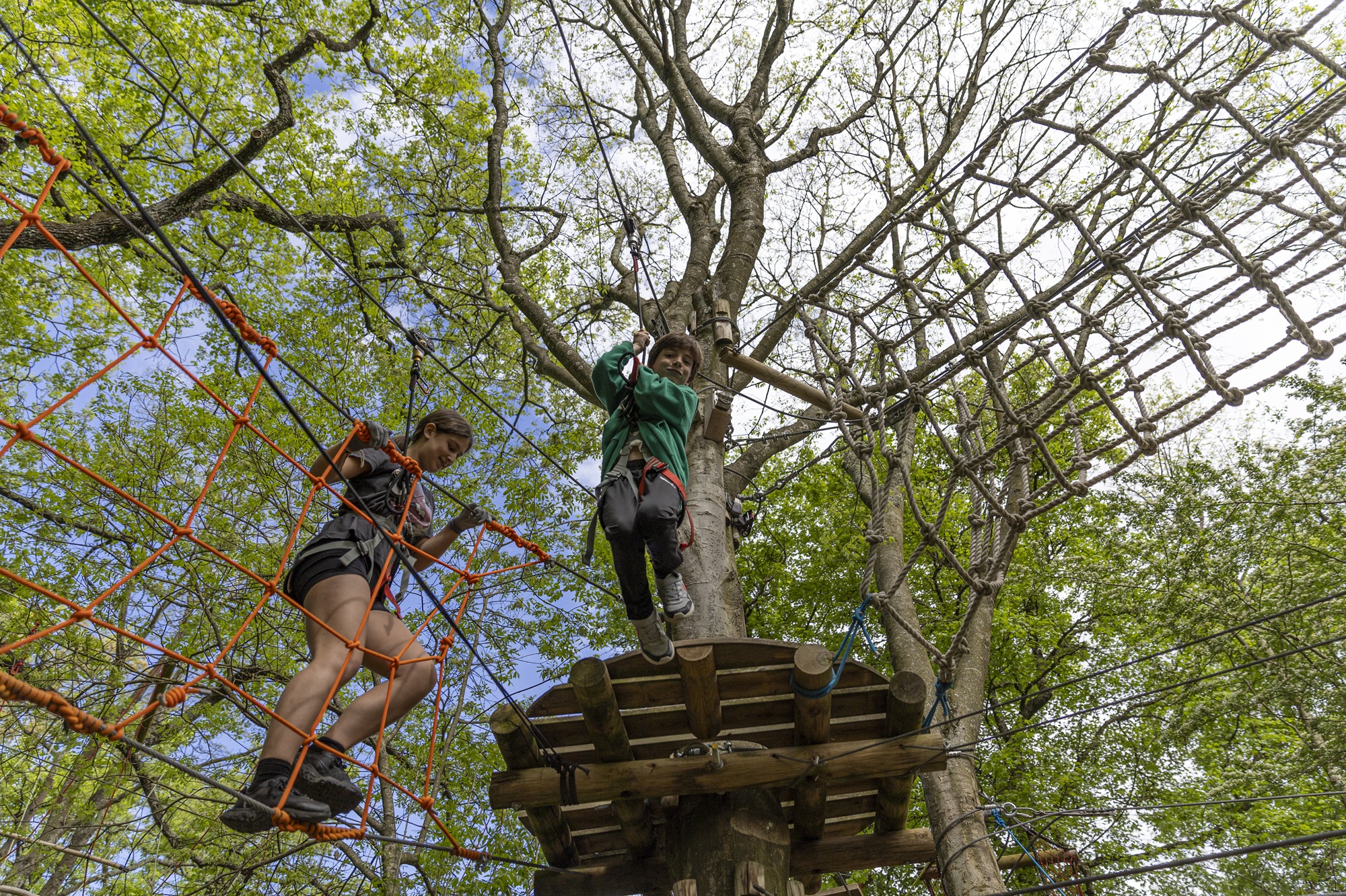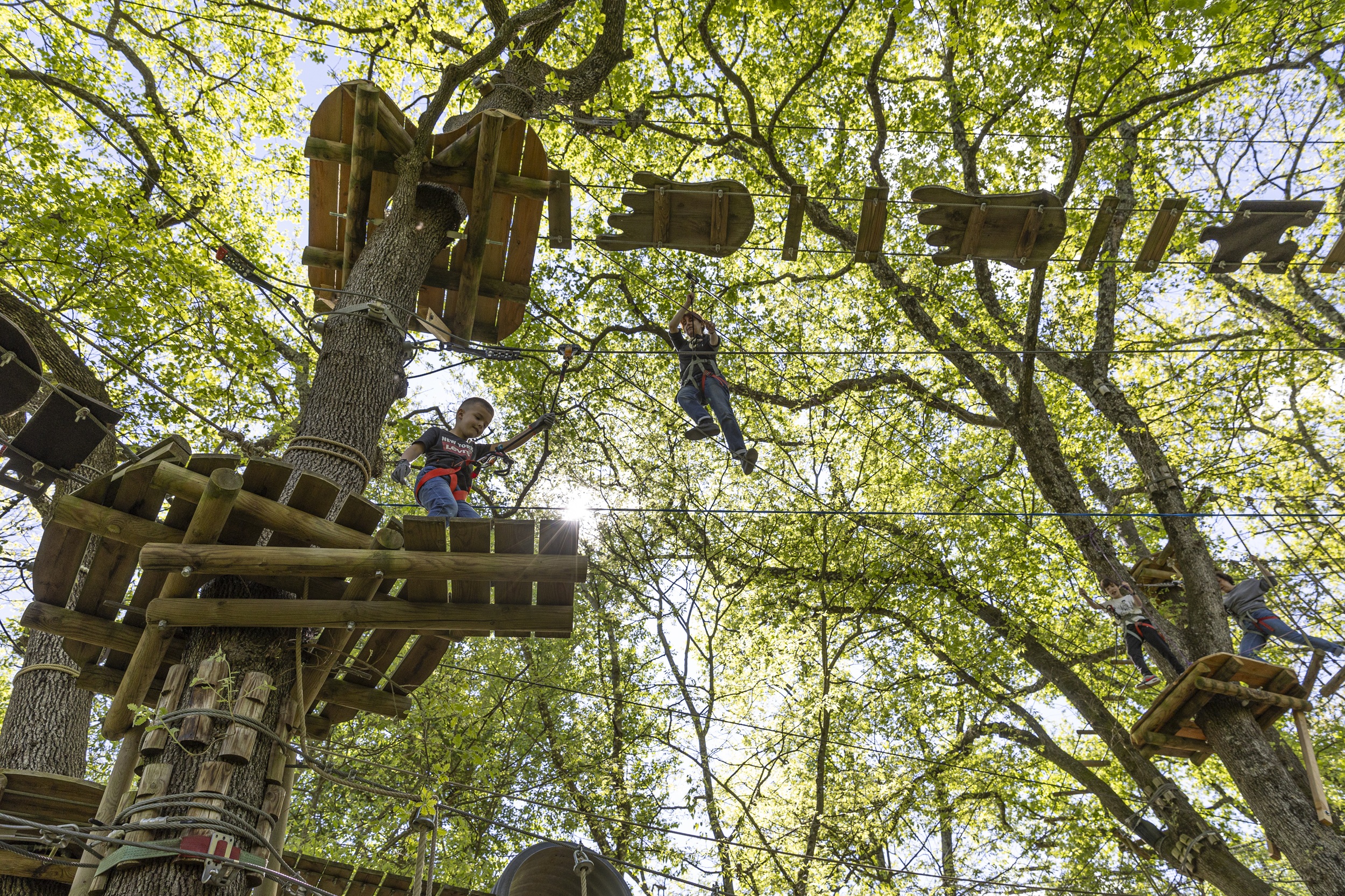 Hochseilgarten mit stufenweise steigenden Schwierigkeitsgraden ab 3 Jahre zugänglich durch eine Sicherheitshauptleine, die “Safe Roller” Riemenscheibe vom Beginn des Parcours bis zur Rückkehr. Maximale Sicherheit garantiert.”