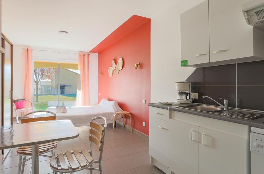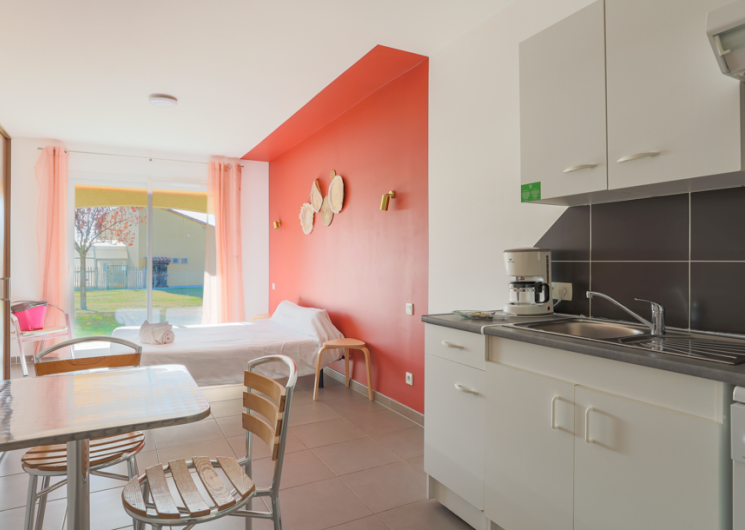 Unsere Residenz bietet Ihnen 53 ausgestattete Wohnungen, die in Studios (2 Pers.), T2-Wohnungen (4 Pers.) und eine T3-Wohnung (6 Pers.) aufgeteilt sind.