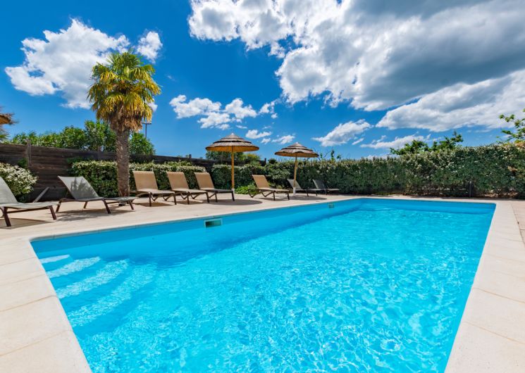 Beheizter Außenpool, Sonnenterrasse. Privilegierte Lage am Rande eines Fußwegs, der am Meer entlang bis zur Spitze von Cap d’Agde, zu den Buchten und Stränden führt.