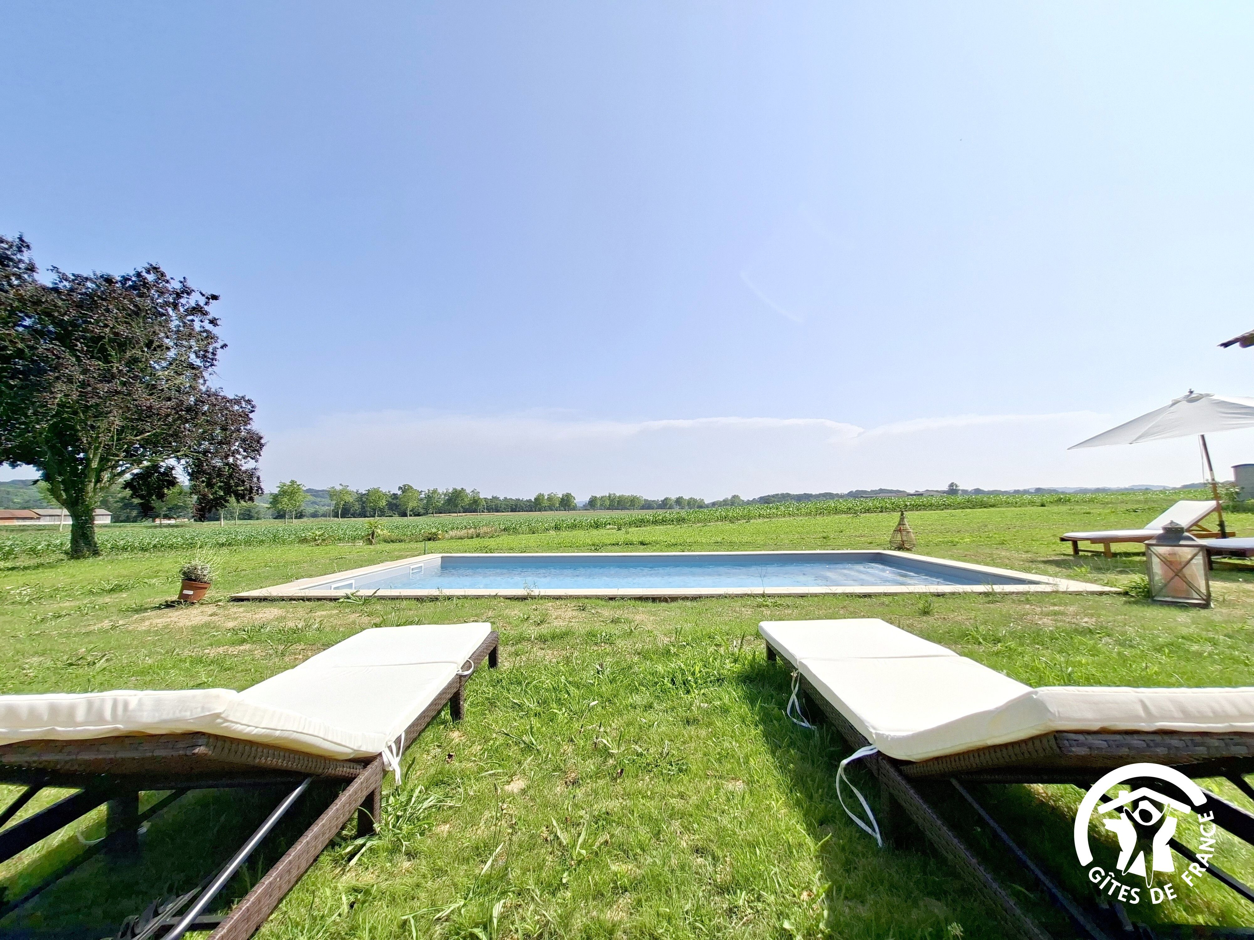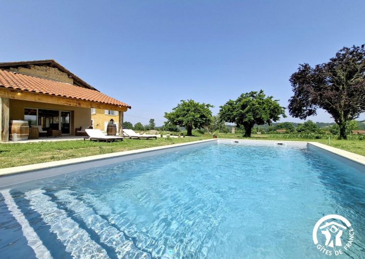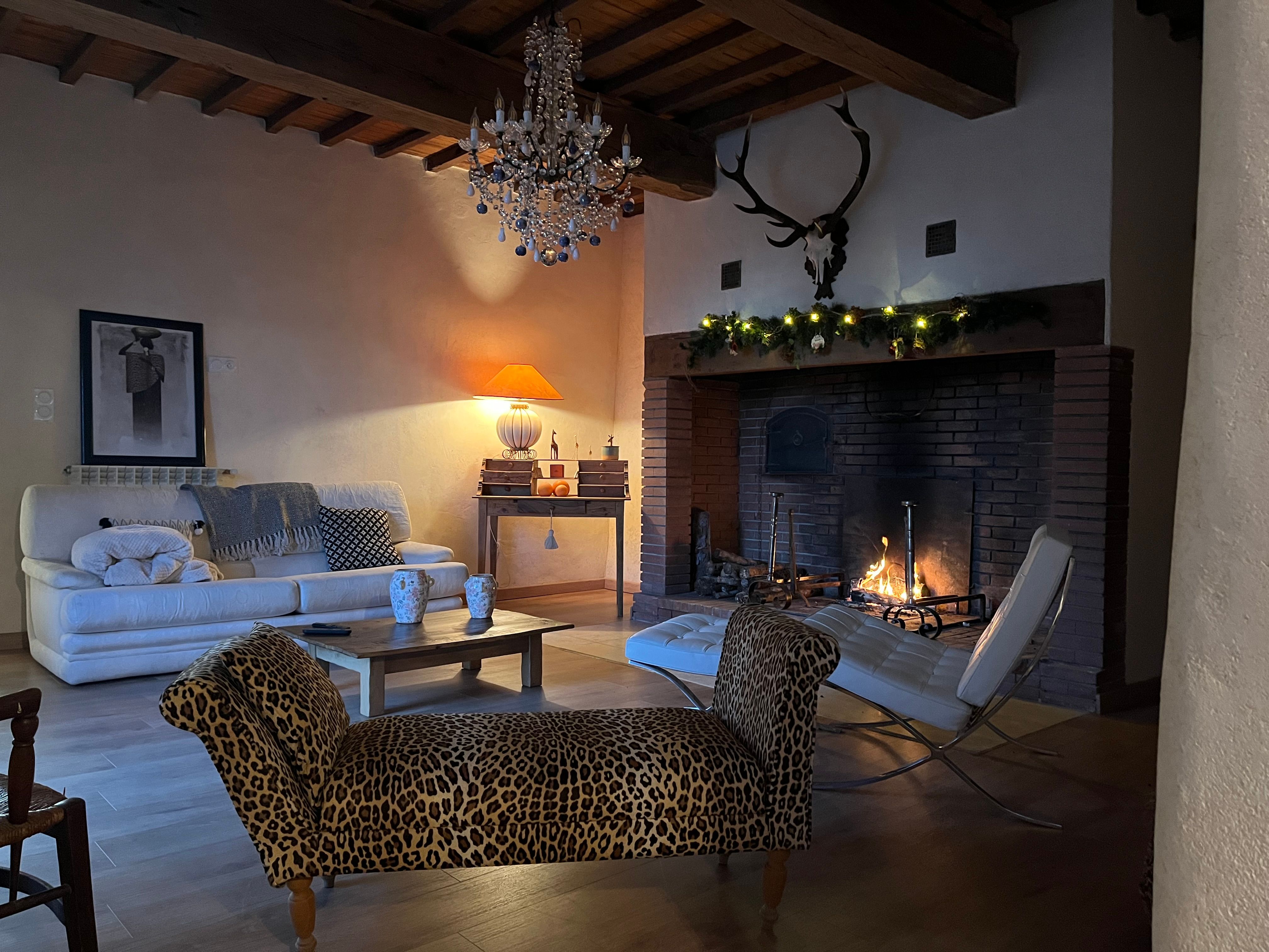 Nichée dans un environnement paisible, la maison offre également une vue panoramique sur les Pyrénées et un vaste jardin arboré. Les hôtes peuvent profiter d’une terrasse conviviale, d’un espace repas extérieur et d’un salon avec cheminée pour des soirées chaleureuses en toute saison.