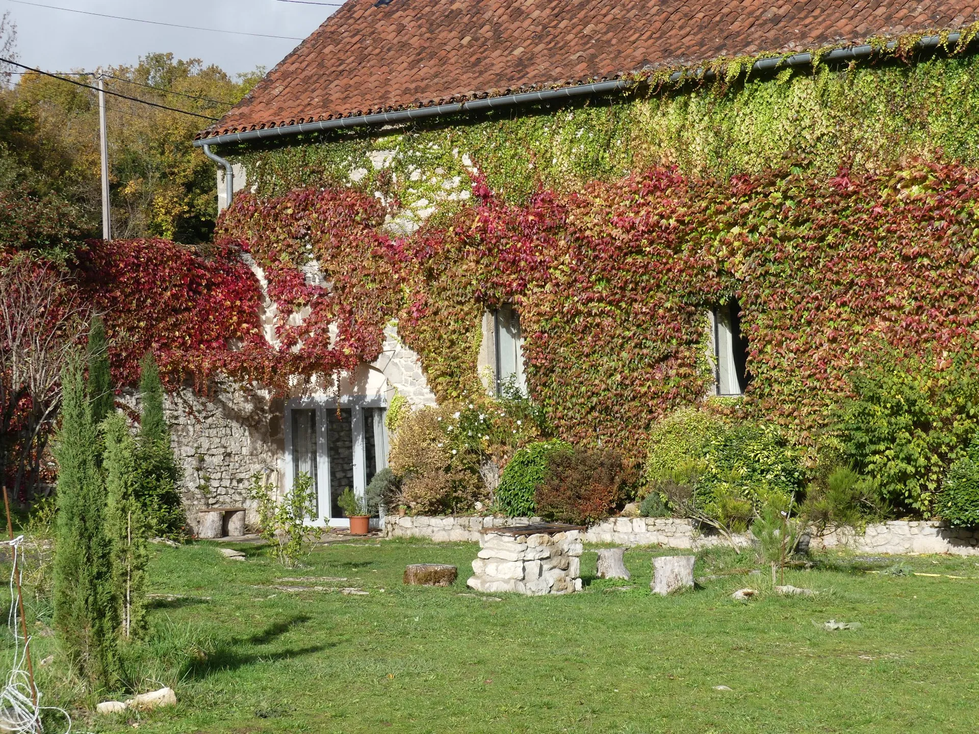 Grand parc d’un hectare fermé, parking voiture, barbecue.