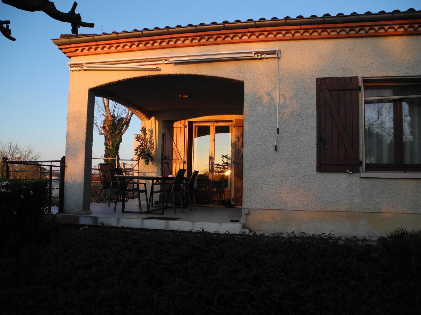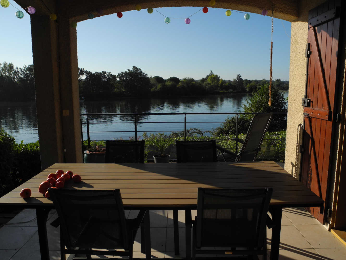 La terrasse surplombe la rivière, du lever du soleil jusqu’à tard dans la soirée, il est merveilleux de s’y reposer, au calme, un verre de vin de Gaillac à la main.