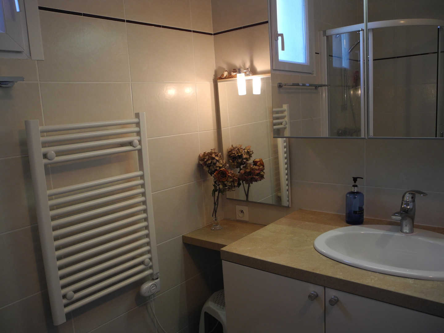 – trois chambres : deux avec lit double 160×200 cm, la troisième, plus petite avec un lit simple 90x190cm, lit bébé, deux salles d’eau avec douche, lavabo et WC, climatisation.