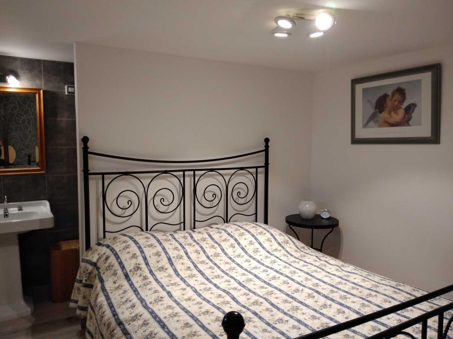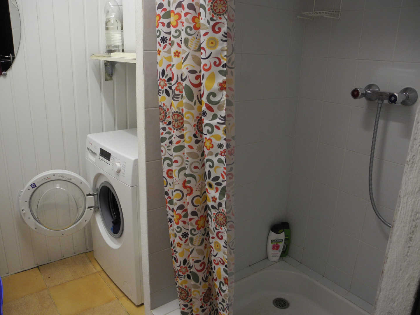 Au niveau inférieur : une chambre avec lit double 160×200 cm et lavabo, salon, réfrigérateur, lave-linge, sèche-linge, douche.