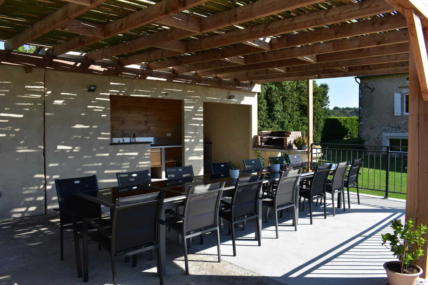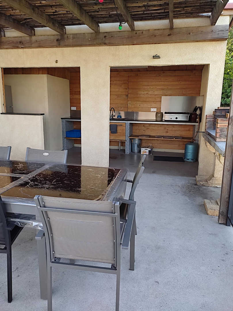 – L’été, le salon, la cuisine donnant sur la terrasse et la piscine, sont très agréables. Sur la terrasse, une grande table permet de réunir tout le monde.