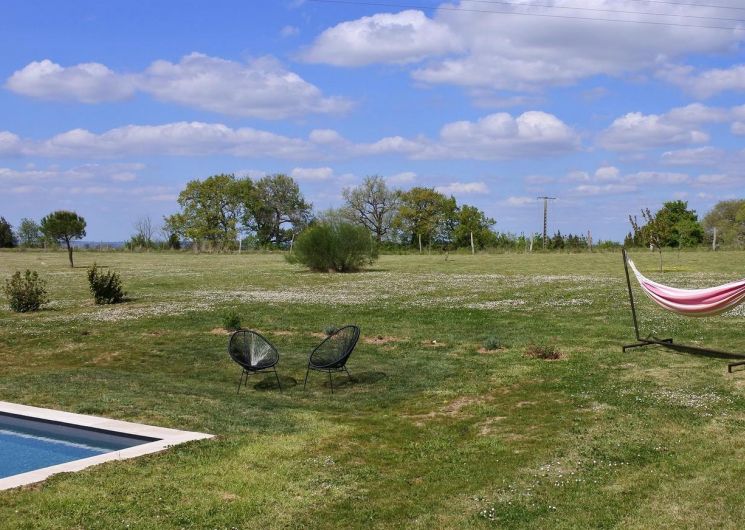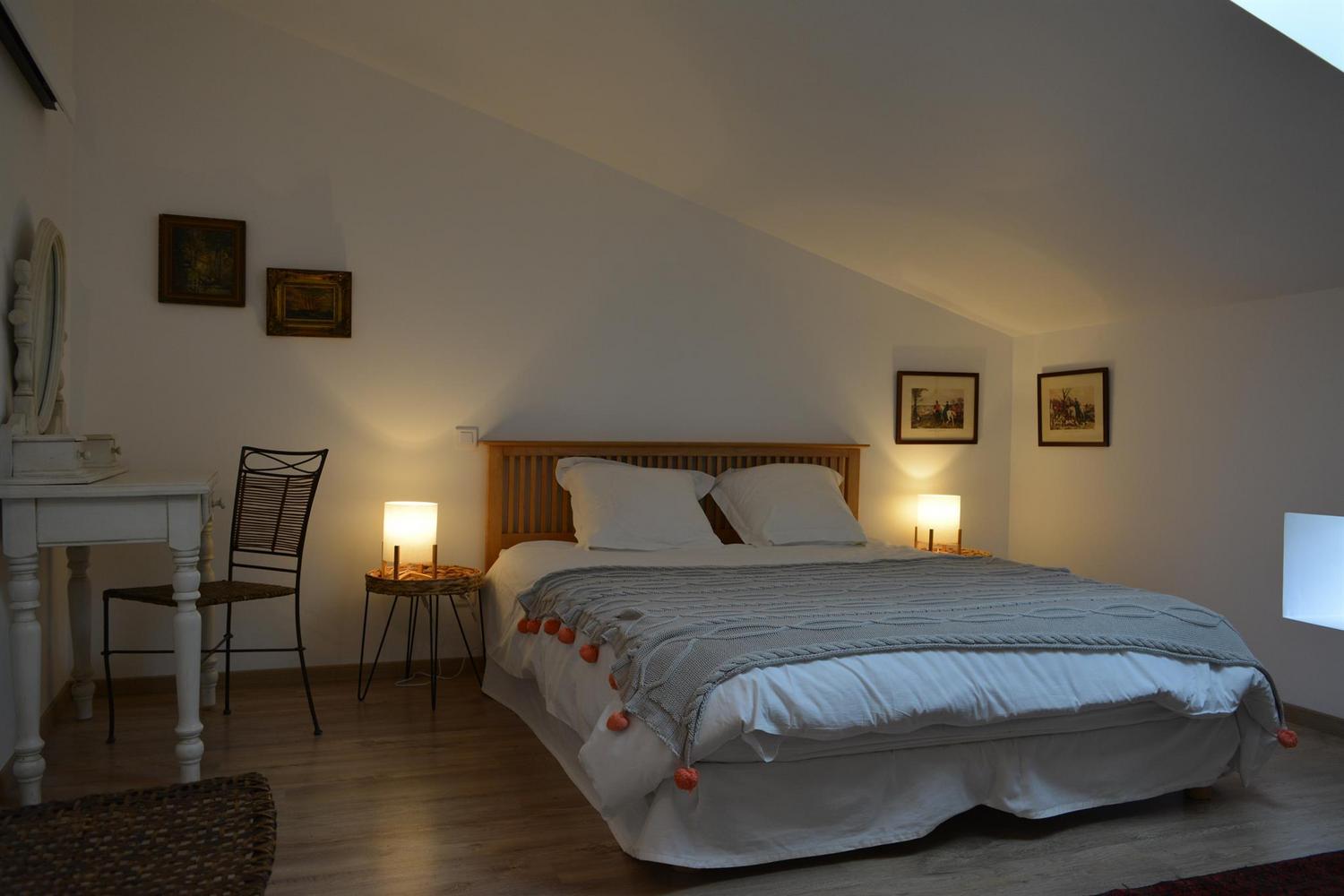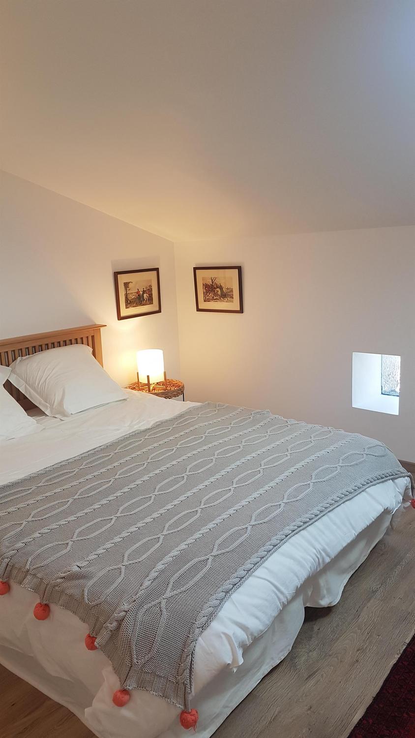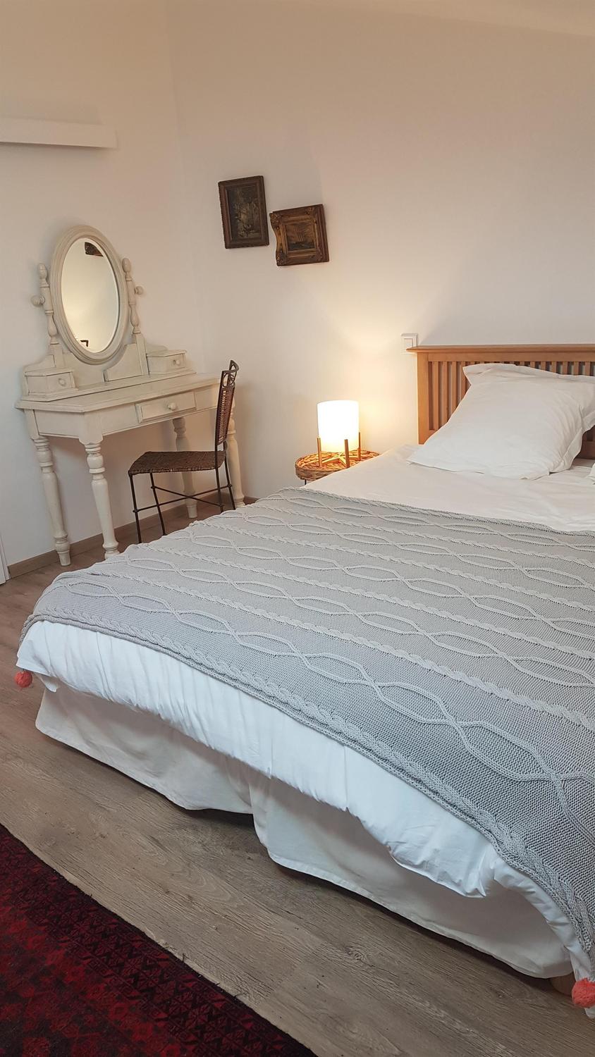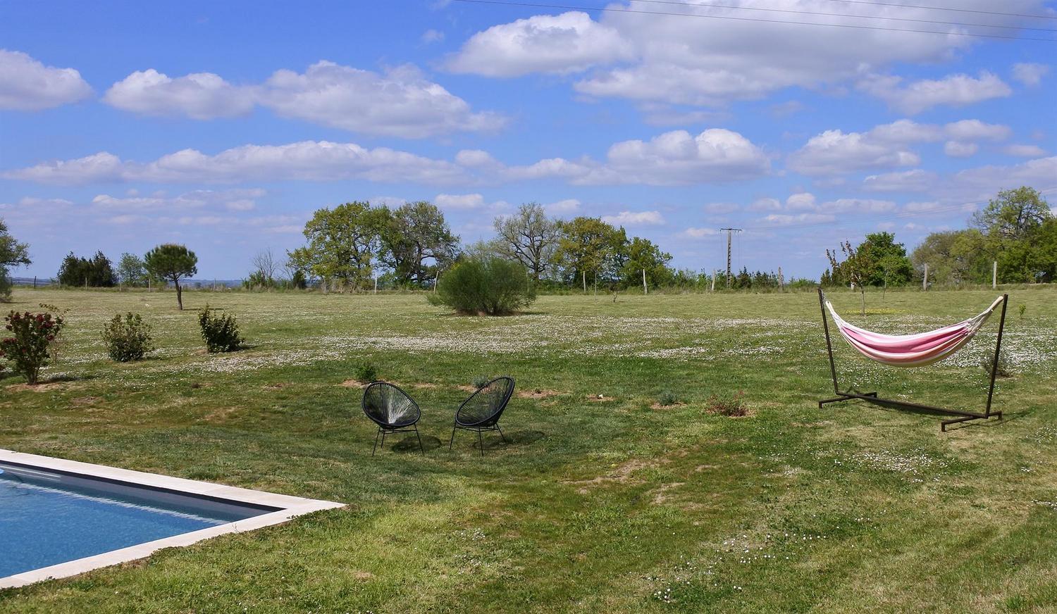 Mitoyen de la maison de la propriétaire, ce petit nid douillet et à la décoration raffinée bénéficie d’un accès indépendant. Il est composé d’une pièce principale avec espace cuisine, repas et détente comprenant 1 canapé lit pour 2 personnes, poutre apparente à 1.80m, salle d’eau avec wc. A l’étage, 1 chambre mansardée avec 1 lit 160. Le gîte ouvre sur le jardin et la cour et profite d’une très belle vue sur la campagne gersoise. A l’arrière de la maison vous pourrez accèder à la piscine à partager avec la propriétaire (5×11 – prof1.30m – sécurisée par un volet roulant), sur un beau parc de 1ha longé par un sentier de randonnée que vous emprunterez pour partir à la découverte de la campagne gersoise et de ses beaux villages comme La Romieu, Gazaupouy…. Pour vous rendre le séjour agréable la propriétaire fournit les draps et le linge de toilette. Sur demande et réservation, elle vous préparera le petit-déjeuner ou un plateau repas.