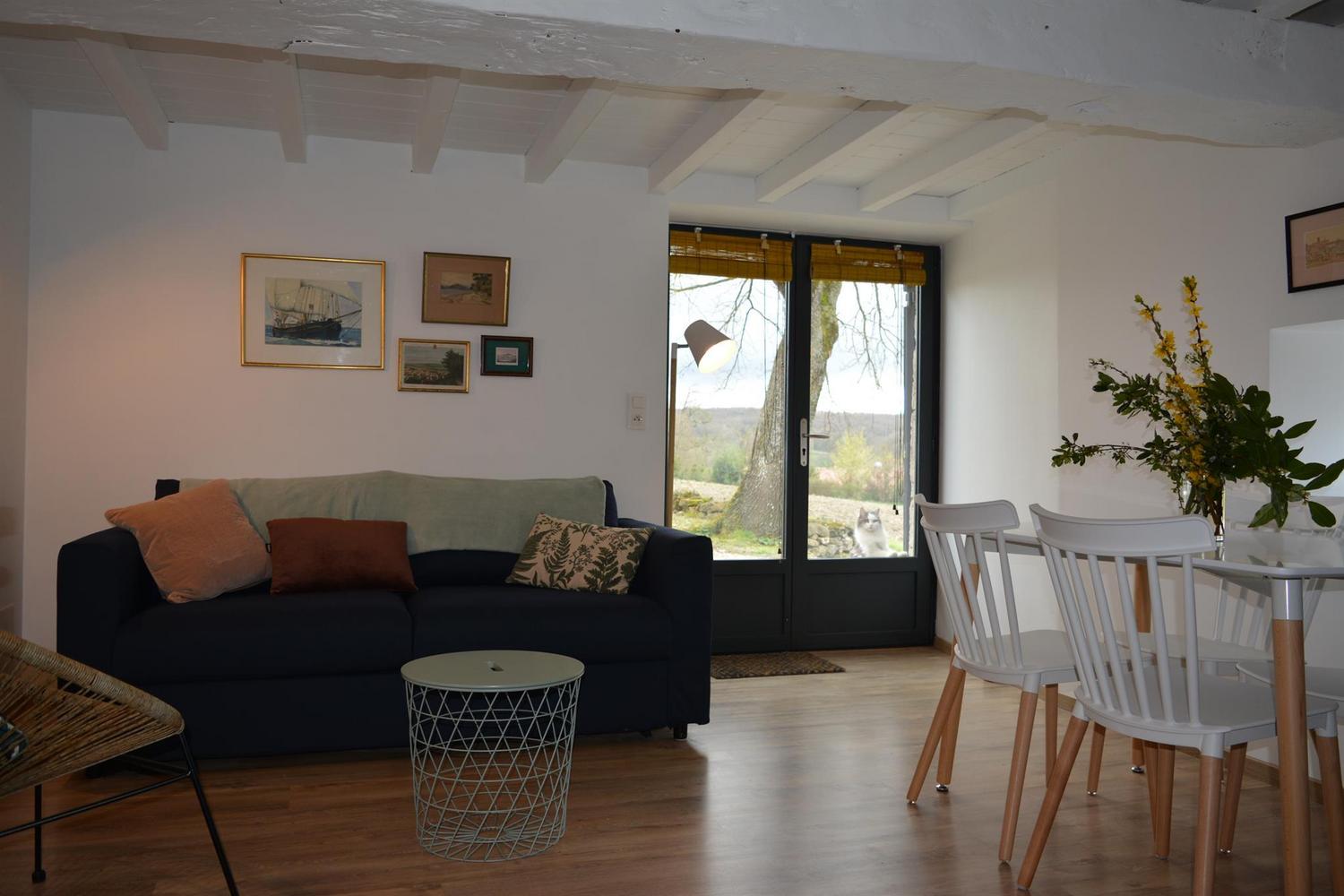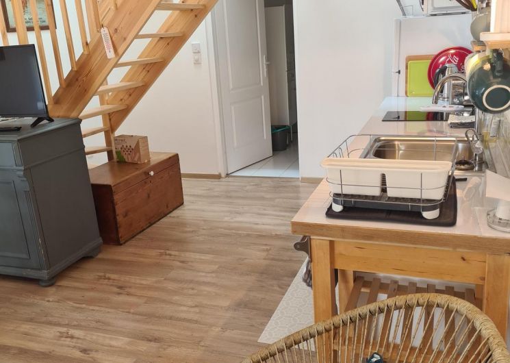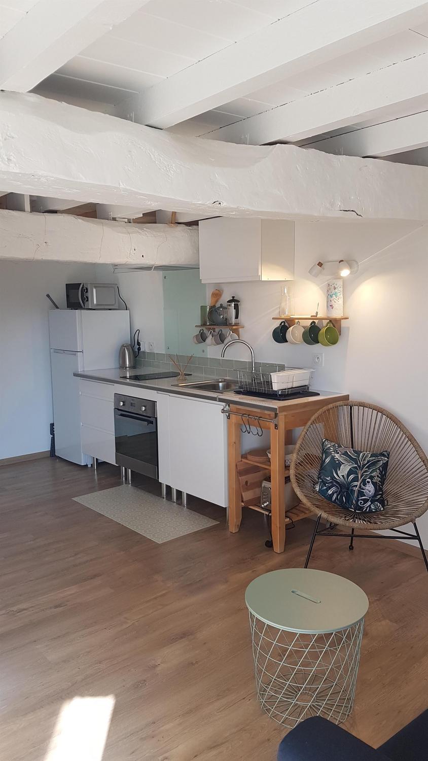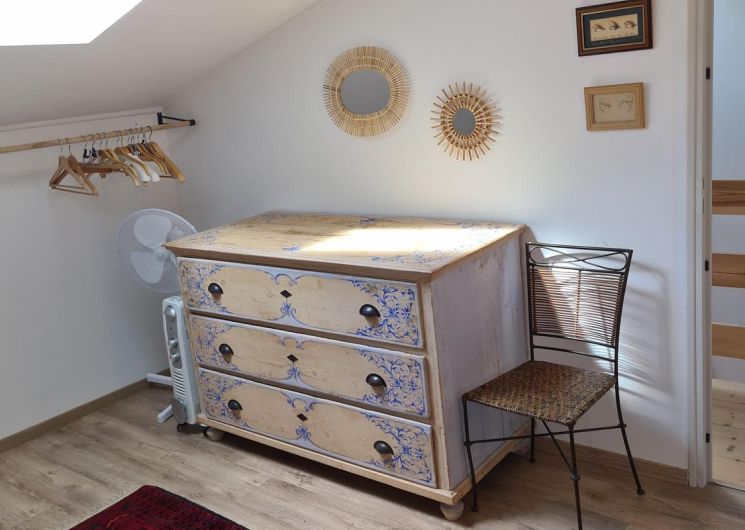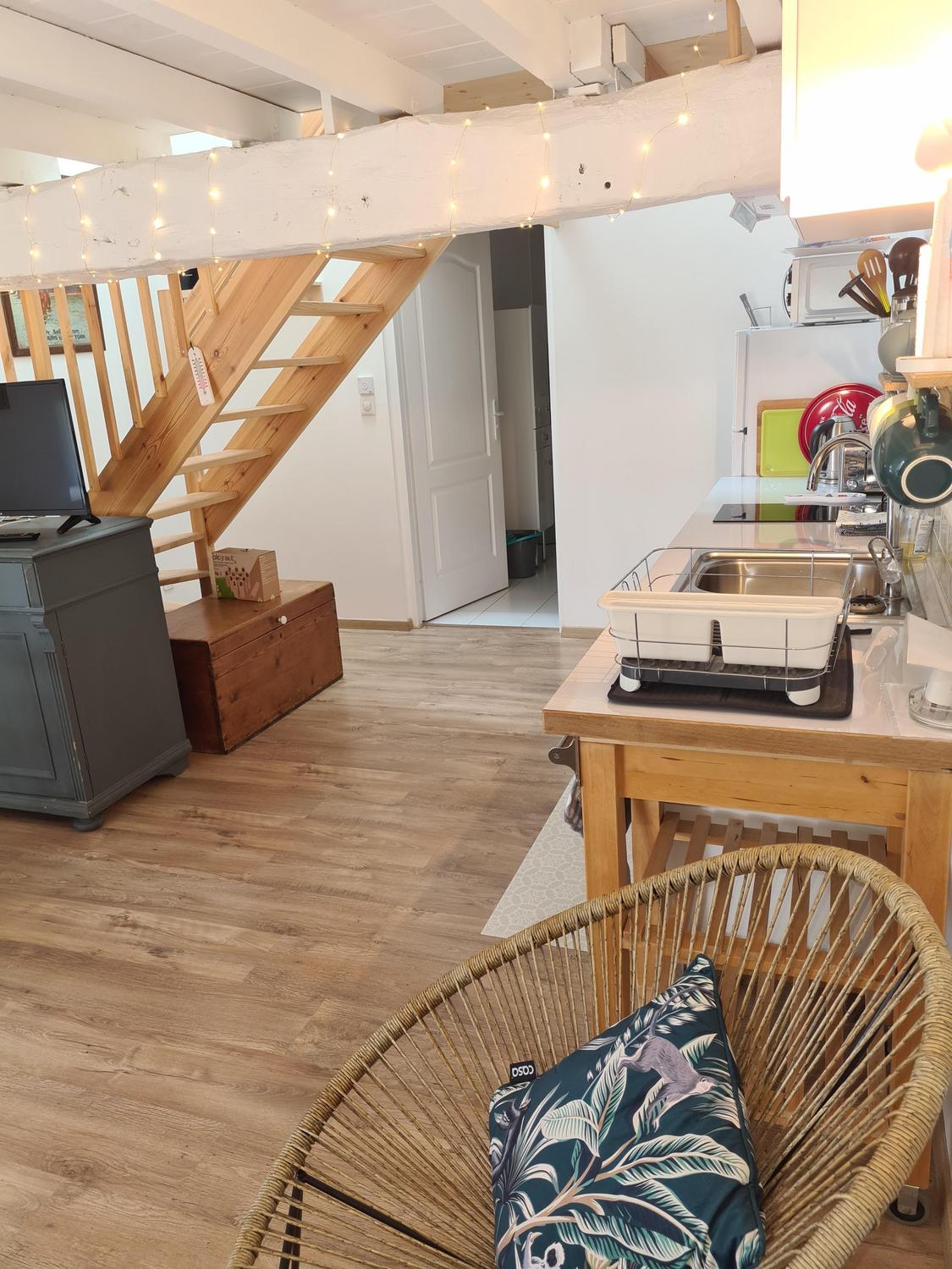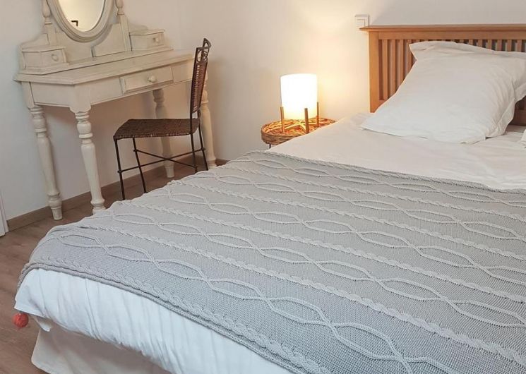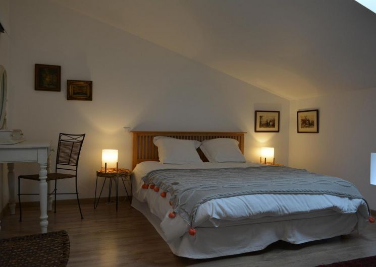 Mitoyen de la maison de la propriétaire, ce petit nid douillet et à la décoration raffinée bénéficie d’un accès indépendant. Il est composé d’une pièce principale avec espace cuisine, repas et détente comprenant 1 canapé lit pour 2 personnes, poutre apparente à 1.80m, salle d’eau avec wc. A l’étage, 1 chambre mansardée avec 1 lit 160. Le gîte ouvre sur le jardin et la cour et profite d’une très belle vue sur la campagne gersoise. A l’arrière de la maison vous pourrez accèder à la piscine à partager avec la propriétaire (5×11 – prof1.30m – sécurisée par un volet roulant), sur un beau parc de 1ha longé par un sentier de randonnée que vous emprunterez pour partir à la découverte de la campagne gersoise et de ses beaux villages comme La Romieu, Gazaupouy…. Pour vous rendre le séjour agréable la propriétaire fournit les draps et le linge de toilette. Sur demande et réservation, elle vous préparera le petit-déjeuner ou un plateau repas.