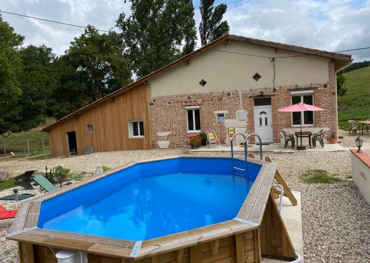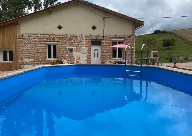 Outside, terrace with garden furniture, a second set of garden furniture near the barbecue. Sun loungers and above-ground swimming pool (5.50 x 3.50, depth 1.20). Outbuilding with washing machine. Gravelled courtyard.