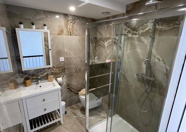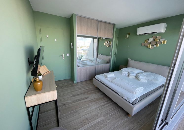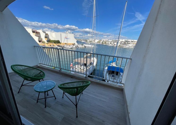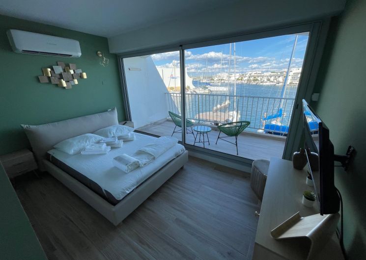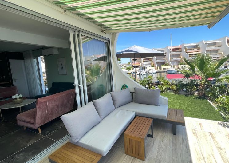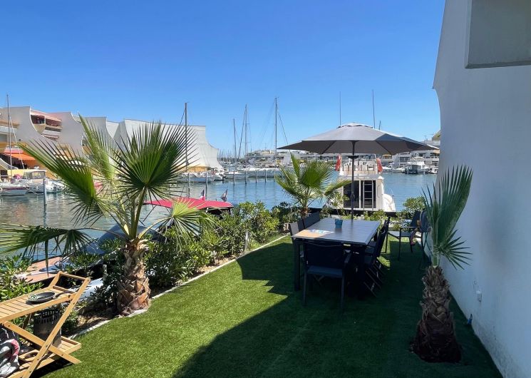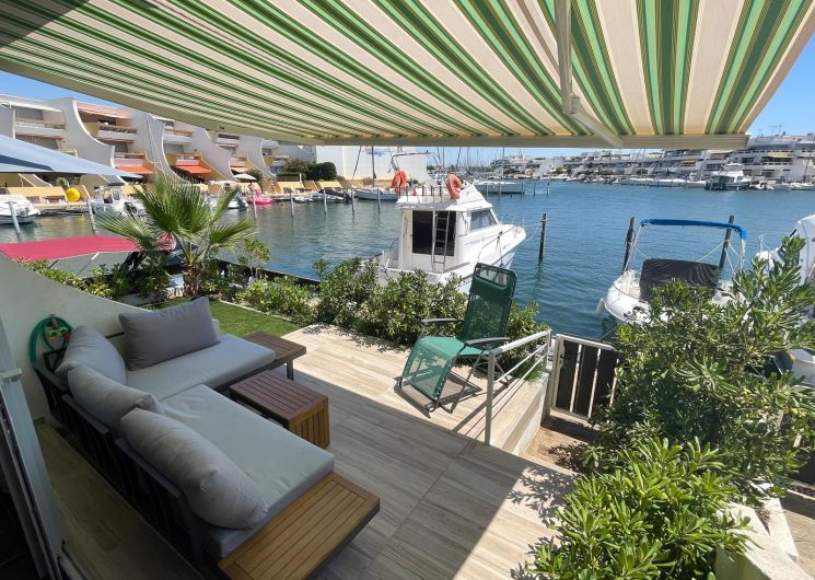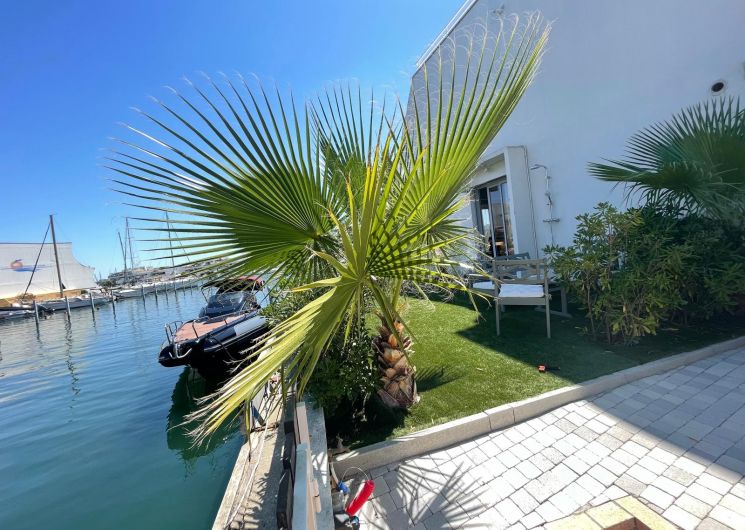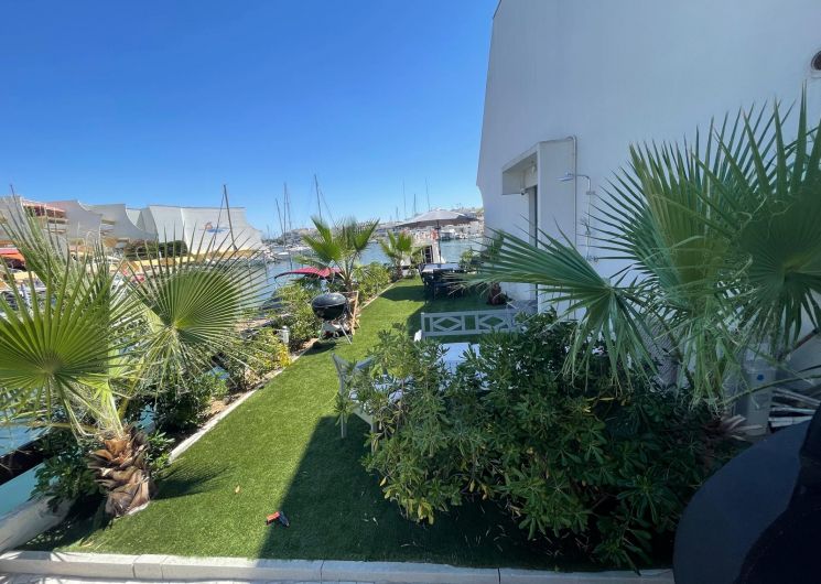 Une marina entièrement rénovée abrite un duplex raffiné avec jardin privé au bord de l’eau. À seulement 100 mètres de la plage, le temps s’y écoule avec douceur, entre lumière méditerranéenne et art de vivre en bord de mer, avec une place de bateau à disposition.