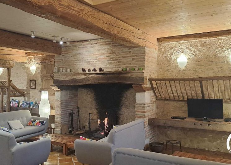 – Pièce à vivre spacieuse avec cuisine ouverte équipée, salon avec une belle cheminée monumentale, bois offert, quatre canapés. Télévision satellite et TNT, internet Wifi.