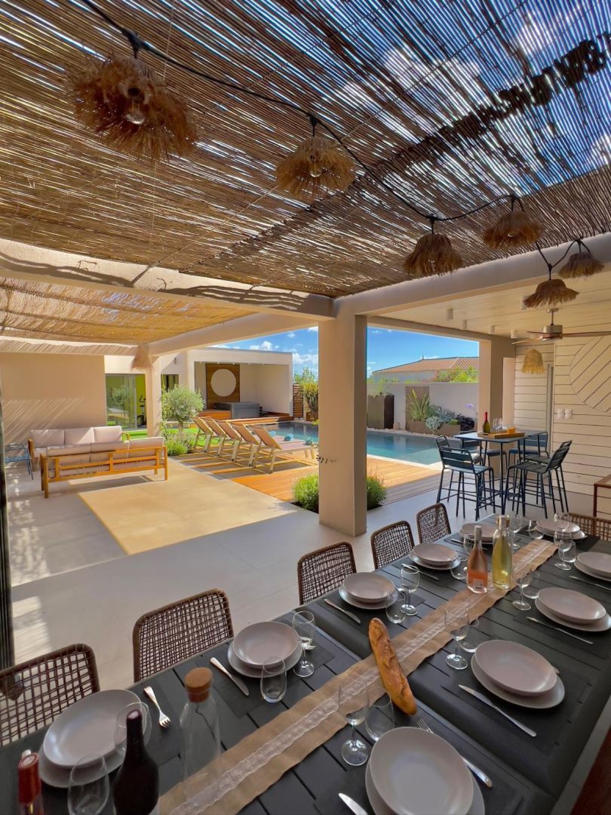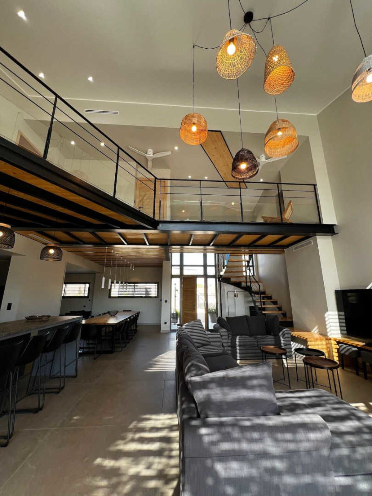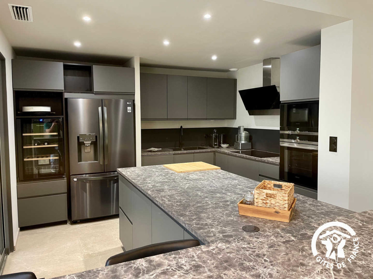 La vaste pièce de vie comprend un salon confortable, une table à manger spacieuse de 14 assises et un coin télévision idéal pour les enfants. Côté cuisine, vous profiterez d’un large plan de travail et de tous les équipements nécessaires (four, réfrigérateur américain, cave à vin, machine à café, robot multifonctions). Les 6 chambres sont dotées de lits king size (180×200), modulables (pour 3) en lits simples. Chaque chambre bénéficie de sa propre salle de bain attenante pour un confort et une intimité optimum. À noter que deux des chambres sont situées dans une dépendance à l’étage, celle-ci dispose de son propre salon, cuisine et terrasse privée. À l’étage toujours, un espace détente comprend un baby-foot et un coin lecture. À l’extérieur, deux espaces distincts vous attendent : à l’avant, un espace clos sous les pins équipé de jeux pour les enfants; à l’arrière, les grandes baies vitrées du salon s’ouvrent sur une terrasse en bois couverte avec une table extérieure et une cuisine d’été équipée d’une plancha et d’un réfrigérateur. Vous pourrez également profiter d’un confortable salon de jardin disposé au bord d’une grande piscine (chauffée selon saison) et d’un spa. Un espace dédié, équipé d’équipements sportifs cardio, est également à disposition. Le stationnement privé est sécurisé par un portail dans la cour de la villa. INCLUS : ménage de fin de séjour, draps, linges de toilette, serviettes de bain, Produits d’accueil d’hygiène. Les petits chiens sont acceptés. ATTRAITS TOURISTIQUES : Découvrez Magalas, au cœur de l’Hérault, reconnu pour ses vignobles, et partez à la découverte d’un domaine local comme celui du “Moulin de Lène”ou domaine “Lafon” . À quelques kilomètres seulement, prenez le temps de découvrir la riche histoire de Béziers puis profitez du littoral héraultais en vous prélassant sur les plages du Cap d’Agde, avant d’arpenter le Mont Saint-Clair à Sète, depuis lequel vous profiterez d’un panorama impressionnant sur l’étang de Thau.