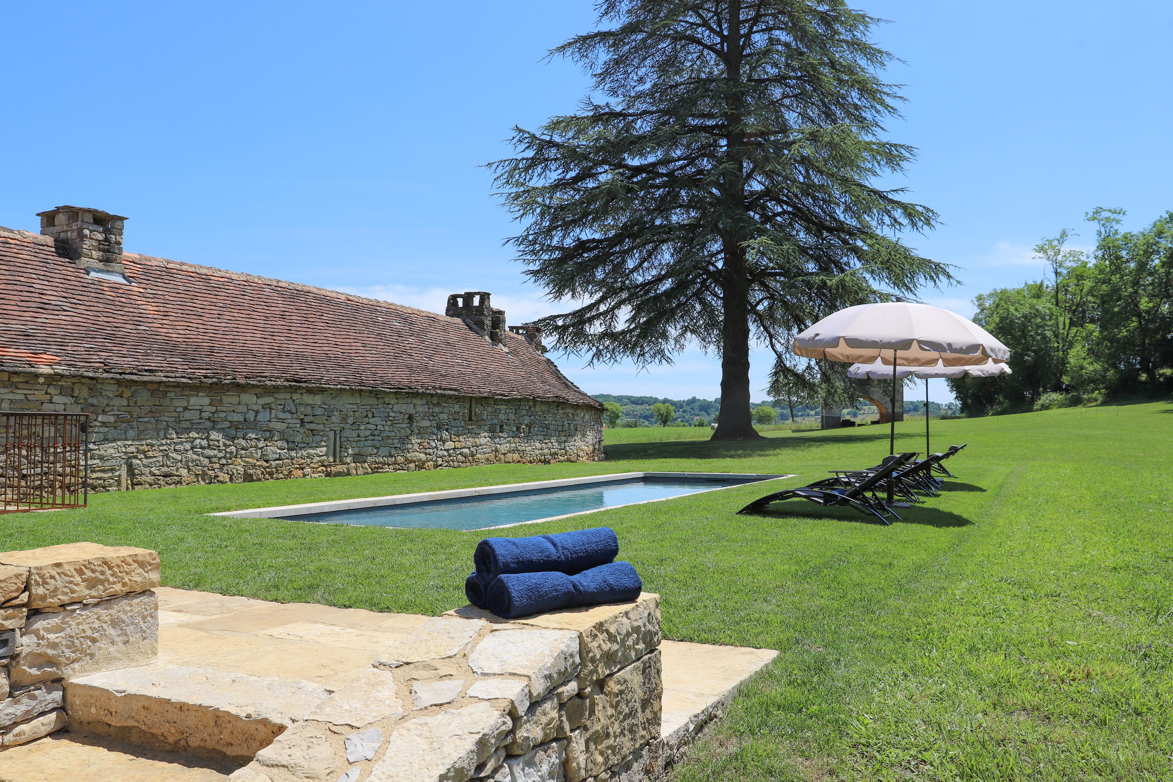 Around the tower, where a beautiful stone staircase leads to the 3 floors, you will find the living areas on the ground floor with a fully fitted kitchen (dishwasher, piano, oven, microwave, fridge), a dining room (table and 12 chairs, storage units), a lounge with armchairs and a toilet with walk-in shower. On the 1st floor, flooded with light, the large lounge (sofa, armchairs, TV), and a master suite (1 bed 160×200) with dressing room, private bathroom with basins. Separate WC with washbasin. On the 2nd floor, 4 bedrooms, 3 of which each have 2 single beds (0.90 x 200) and 1 bedroom with 1 single bed (160 x 200). 1 Italian-style shower room with washbasins, 1 bathroom with washbasins and 2 WCs with separate washbasins. On the top floor, a huge games room with large-screen TV, games and library, a bedroom with 1 x 160×200 bed, large dressing room, 1 shower room with walk-in shower and washbasins, and 1 wc with washbasin. 2 terraces with garden furniture, barbecue and seating. Outside laundry area in an outbuilding exclusive to the château: 2 washing machines, tumble dryer, additional fridge. 1 toilet with shower for the swimming pool. After a few steps, the 11×3 swimming pool with alarm, well integrated into the site and with sun loungers all around. Bed linen and towels provided and included in the price. Wifi in the château. Boules, table tennis, badminton and Mölkky. There are also 3 hectares of woodland for you to explore.
