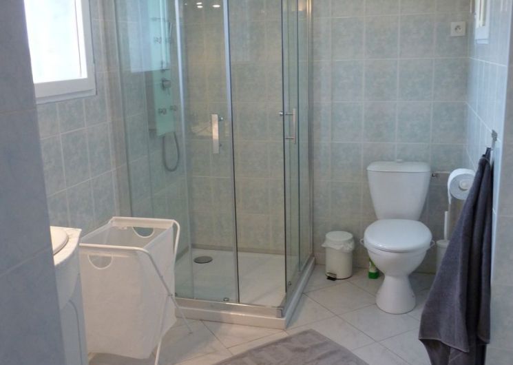 – Badezimmer mit Dusche und WC.