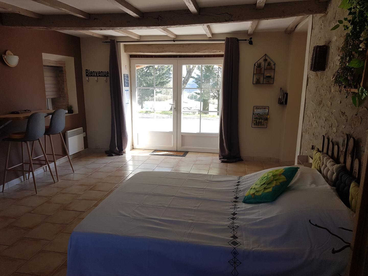 Les deux chambres sont pourvues d’une petite terrasse attenante semi-privative. Elles vous permettront de profiter du grand air lors de vos pauses, petits-déjeuners, déjeuners ou diners (sur réservation). Ces terrasses permettent aussi d’avoir un accès indépendant à votre chambre depuis l’extérieur sans passer par une pièce commune de la maison des propriétaires.