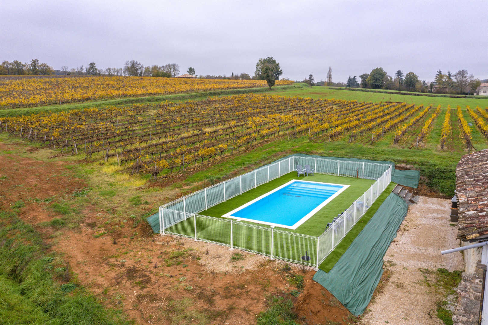 Piscine privée et clôturée située à l’arrière de la maison : 4x10m sur 1,49m.