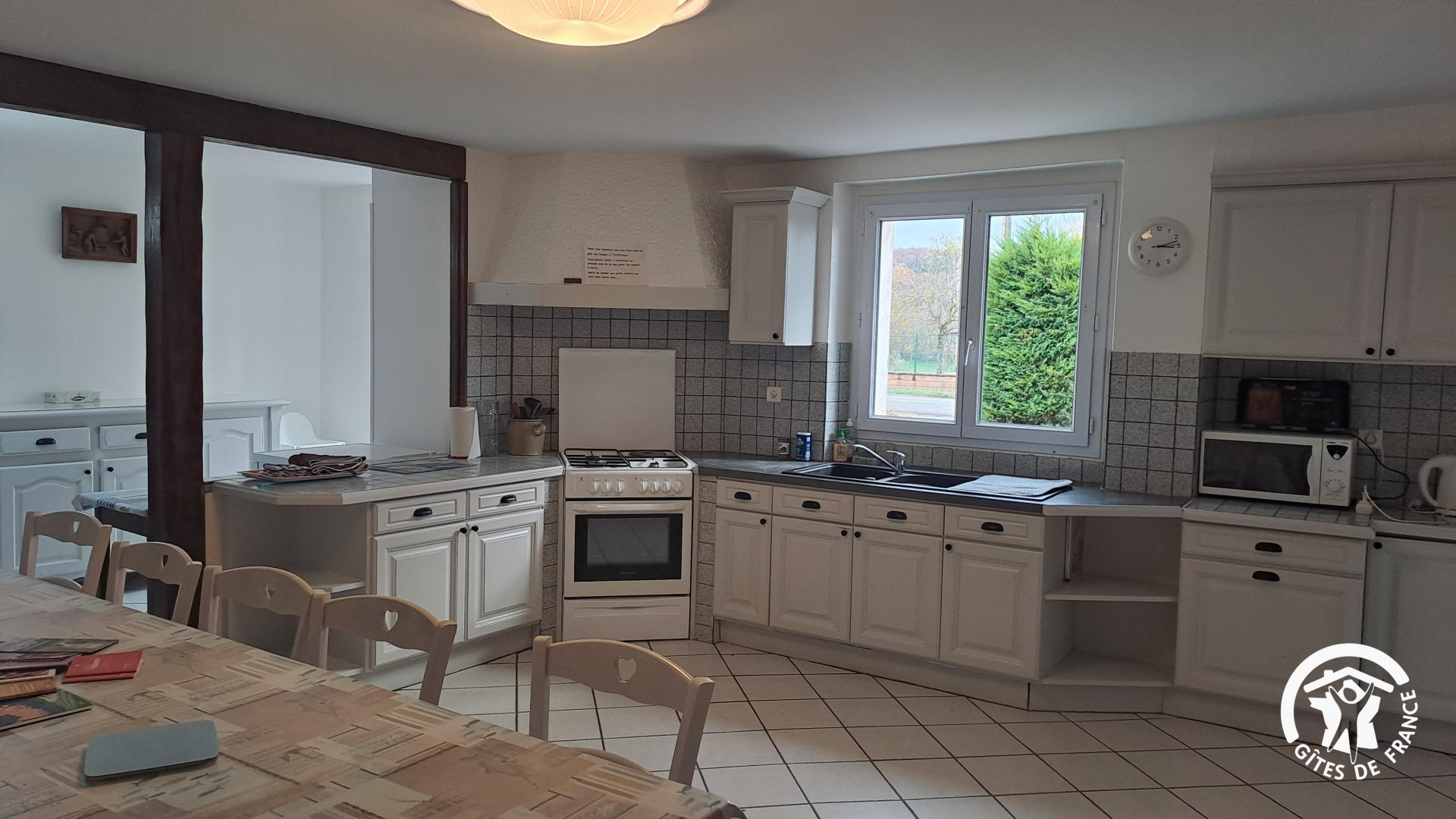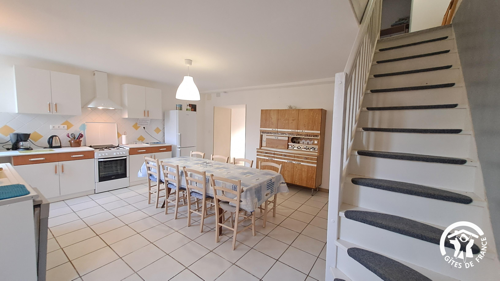 Le Gîte LEN DE L’EL peut accueillir 8 personnes. Il dispose d’un séjour salon et petite table à manger, suivi d’une cuisine équipée avec table à manger.