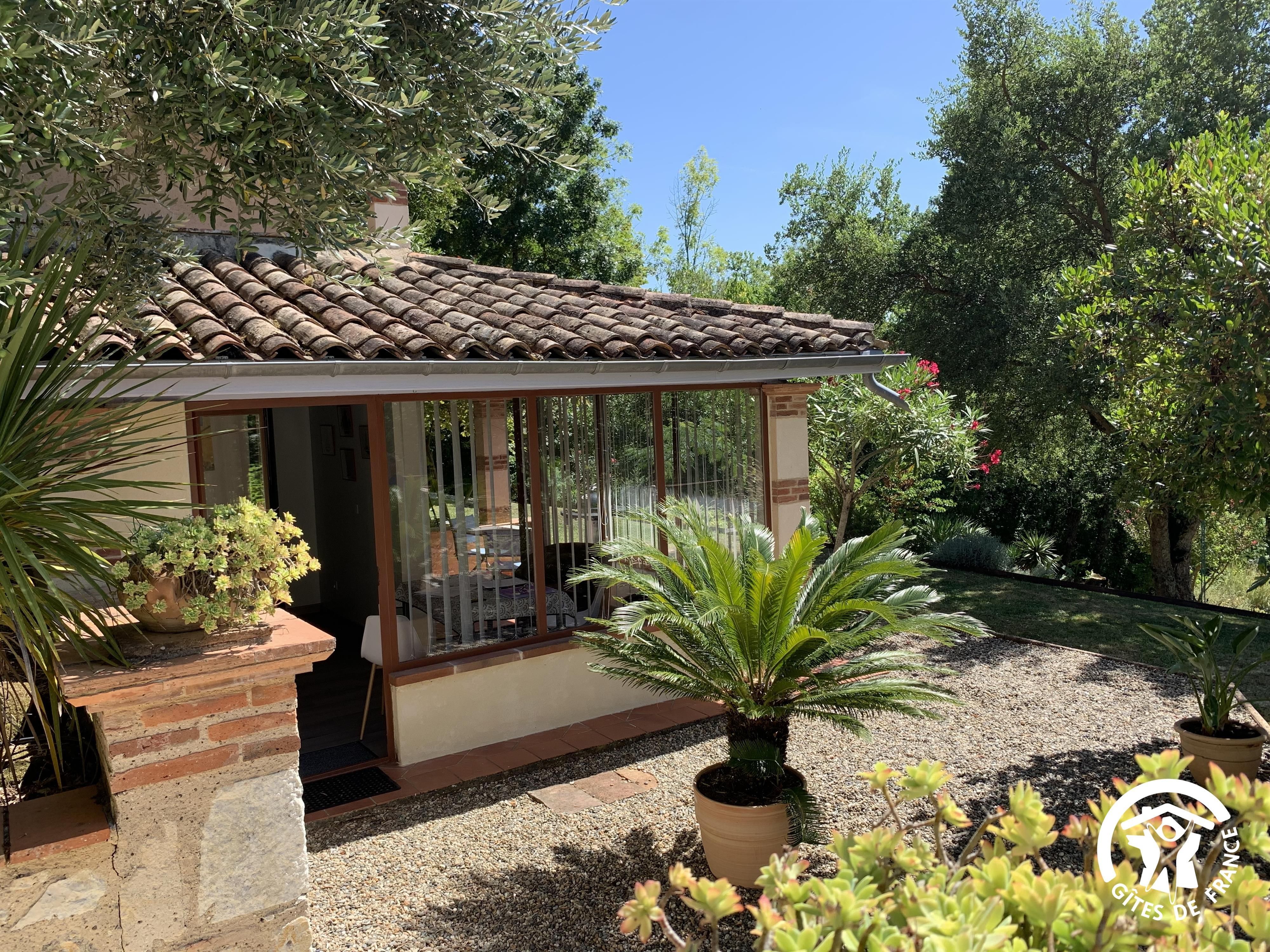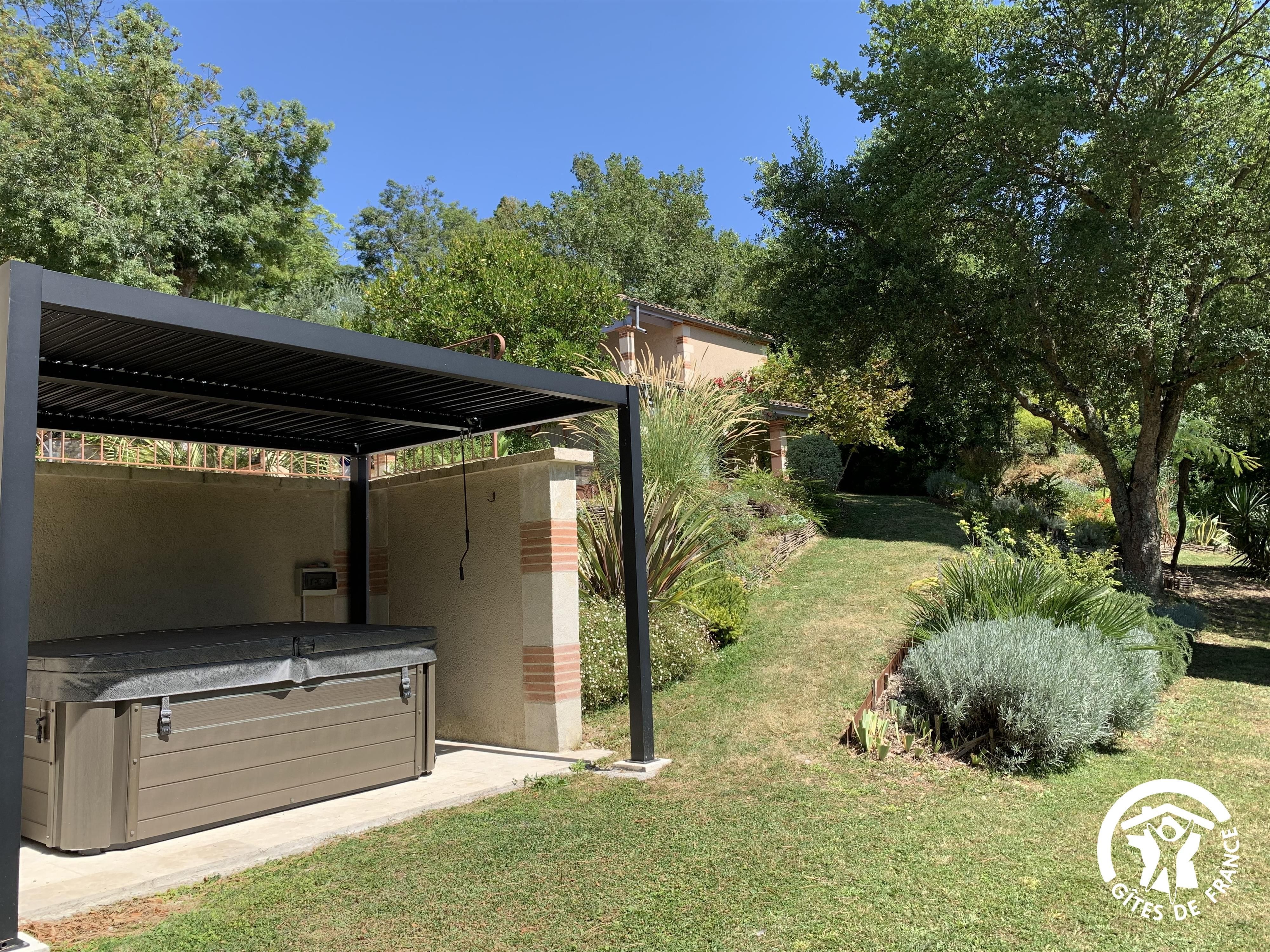 Ce petit gîte cosy aménagé avec goût ouvre sur une terrasse couverte et une jolie vue sur le parc arboré et aménagé de 3000m2 pour profiter de moment de détente tout en appréciant la vue sur les vallons gersois, ou pour une balade sur la propriété.