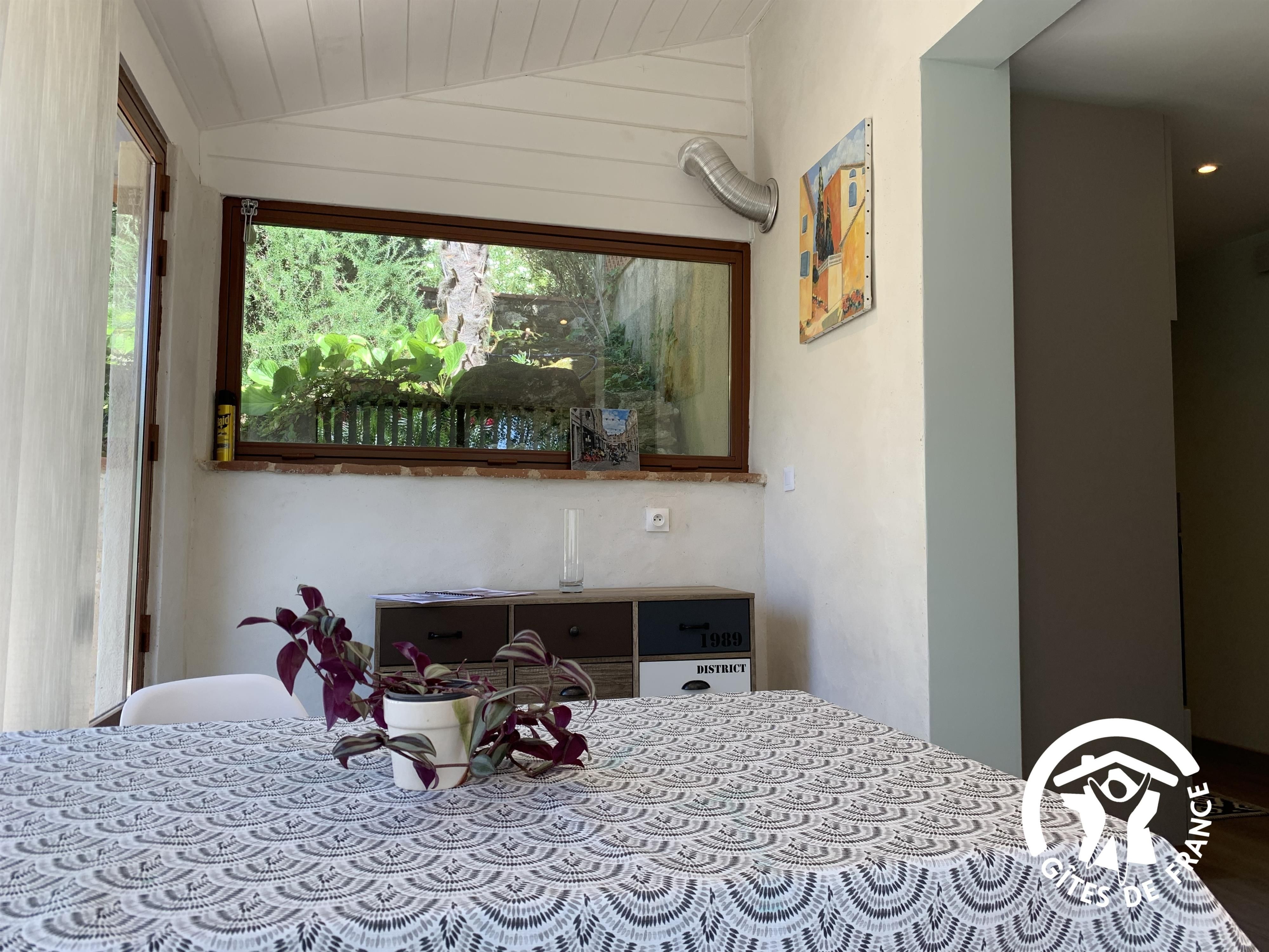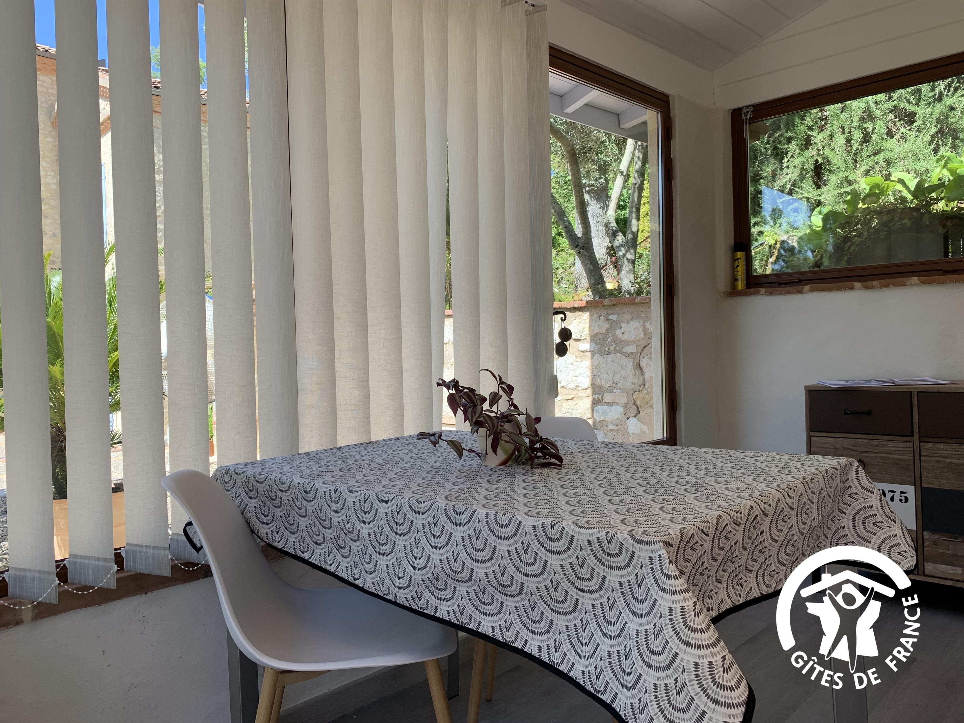 Le gîte se compose d’une véranda aménagée en espace repas et détente, une cuisine, une chambre avec 1 lit 140 et sa salle d’eau avec wc.
