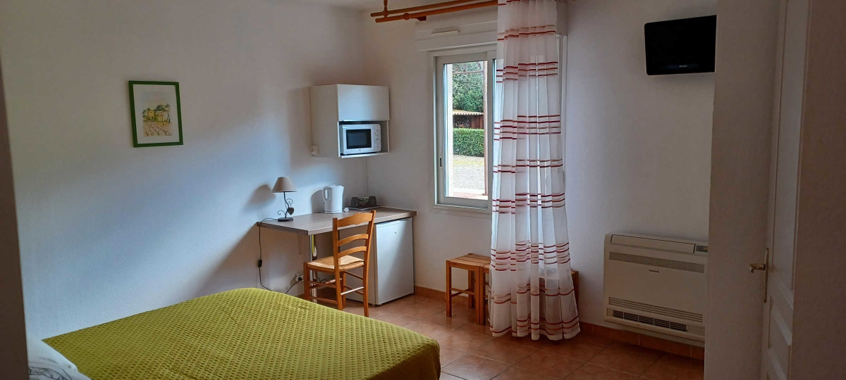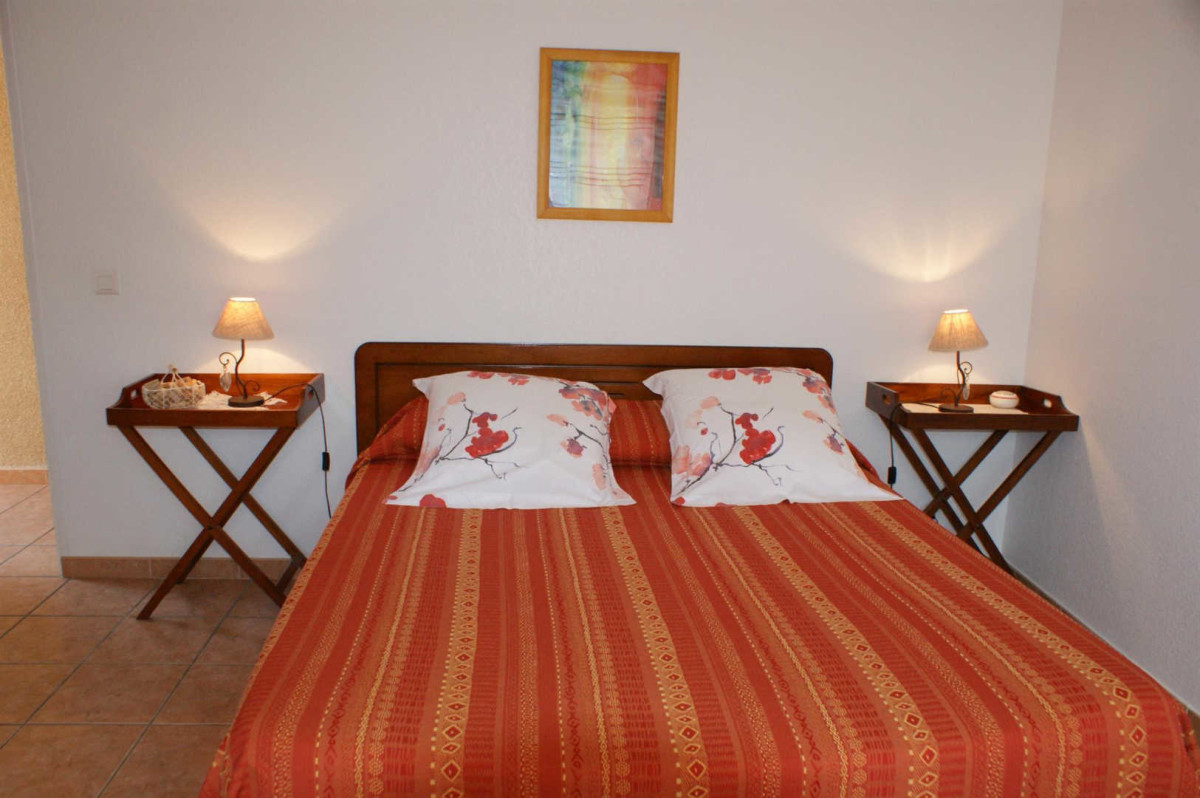 5 chambres climatisées de plain-pied, en rez-de-chaussée, avec salle d’eau et terrasse privative. Selon la saison, le petit-déjeuner est servi dans la salle à manger/salon ou sur la terrasse. TV; Piscine commune (5X10) chauffée du 01/05 au 30/09, parking clos privatif, mobilier de jardin, jeux enfants, ping-pong, basket, terrain de pétanque. Equipement bébé disponible sur demande. ATTRAITS TOURISTIQUES : Agde (cité phocéenne) et son chateau Laurens, Cap d’Agde (Port et Parc loisirs Aqualand), bassin de Thau (ostréiculture), canal du midi, Pézenas, Sète (port de pêche et commerce), Béziers les halles et les neufs écluses de Fonseranes – Chambre climatisée de 20 m2 en rez-de-chaussée avec salle d’eau, WC indépendant, TV et terrasse privative. 1 lit 160×200, 1 lit 90×190. Plateau de courtoisie.