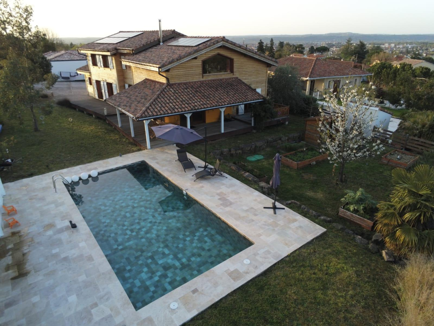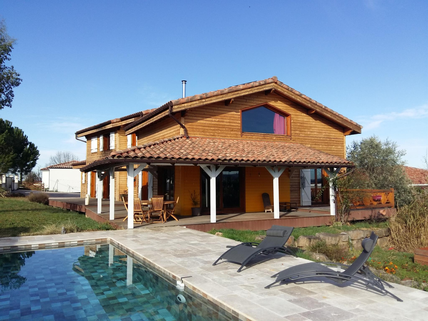 Grande et belle maison réalisée en bois massif (Epicéa centenaire de Roumanie), pour 11 personnes avec grande piscine privative chauffée (type balinaise, elle mesure 9,5×4,5m pour 1,5m de profondeur) et son Pool house, dans un quartier résidentiel calme à seulement 5 minutes du centre historique, de la cathédrale Sainte-Cécile et du Palais de la Berbie inscrits au patrimoine mondial de l’Unesco. Commerces, restaurants, cinéma, théâtres, gare…. tout est à proximité.