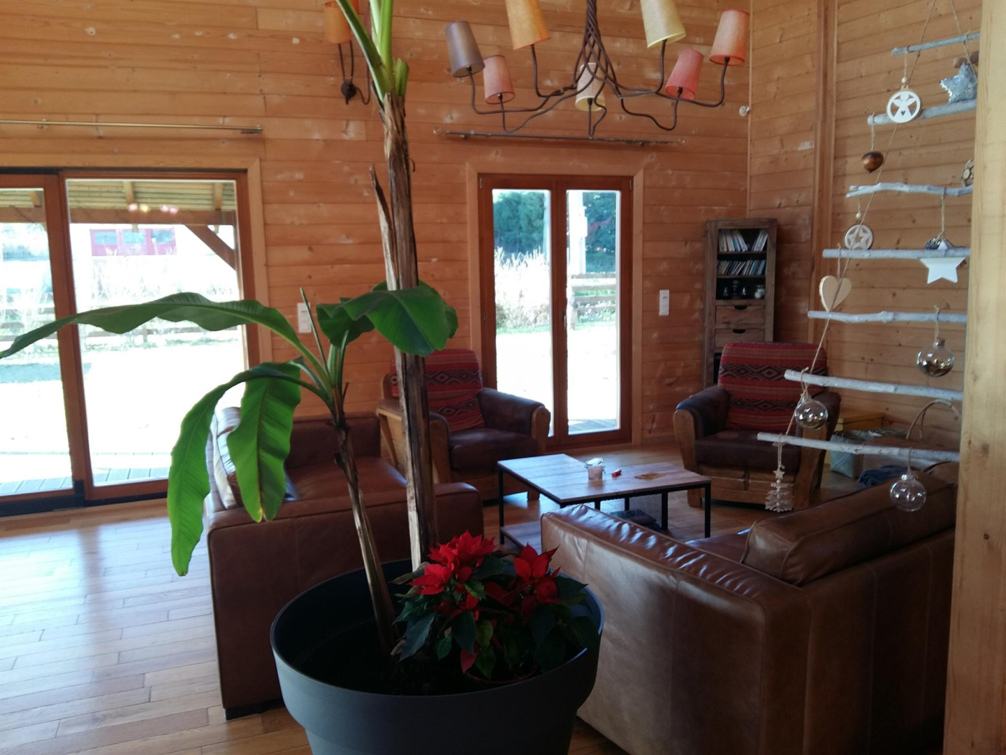 – grande pièce à vivre avec séjour et salon donnant sur la terrasse couverte, la piscine et le jardin