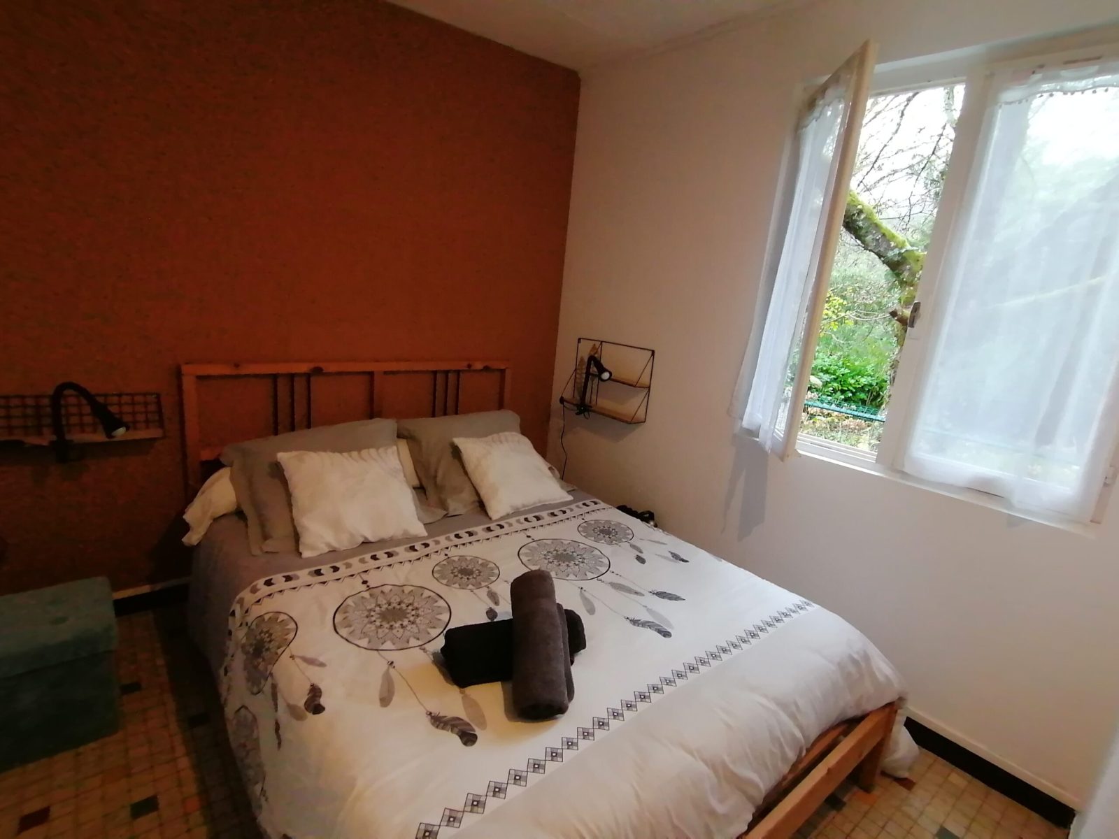 Chambre avec lit 140 x 190 cm, vue sur le jardin