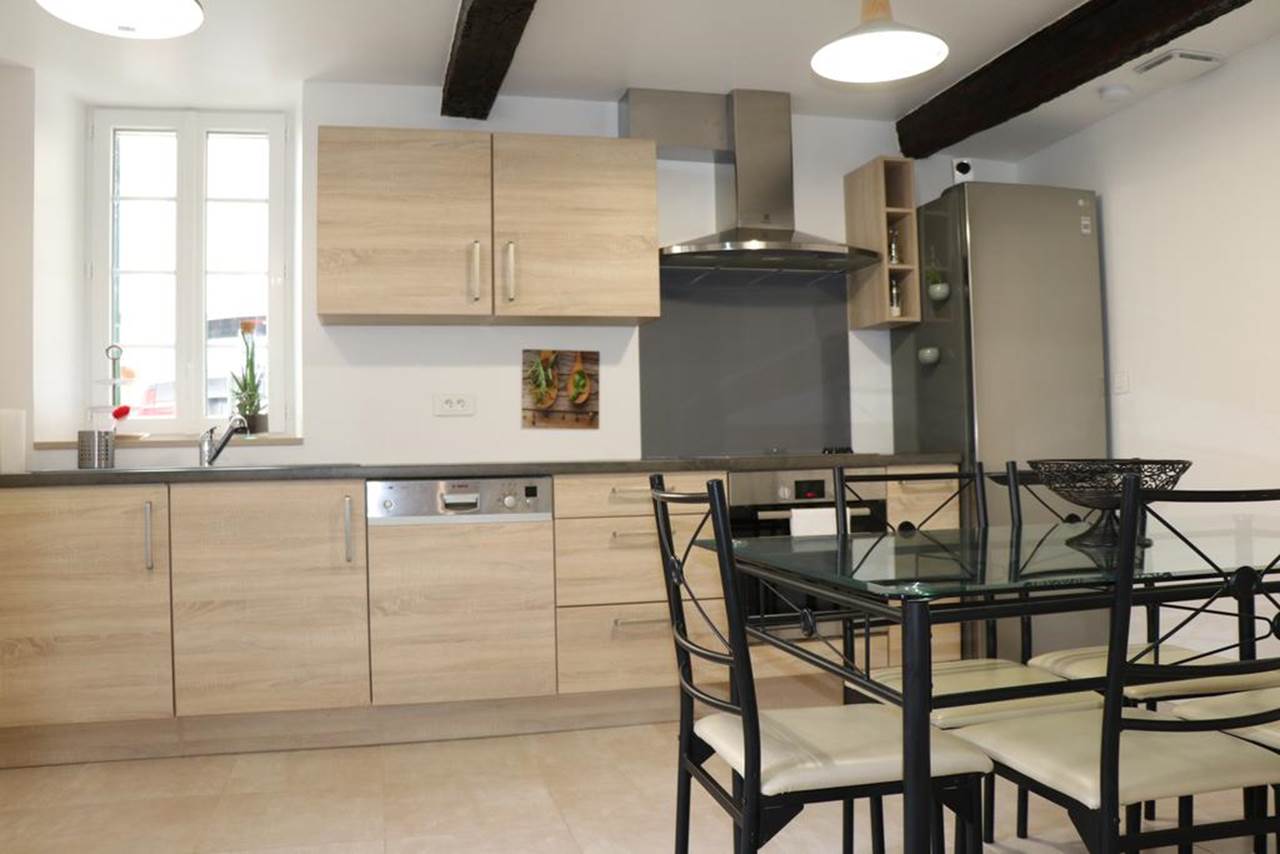 Grande maison rénovée avec goût au cœur du village . Spacieuse, confortable. proche de toutes commodités ( restaurant, supérette, boulangerie, à deux minutes à pied).