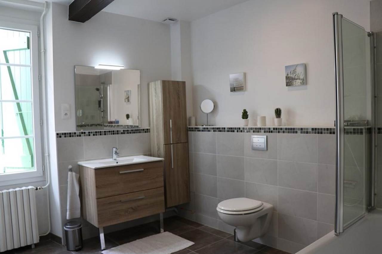 Trois chambres sont équipées de lits doubles (160X200), une chambre avec deux lits simples et une vaste chambre familiale avec un canapé convertible ainsi que deux lits superposés pour les enfants. Lit bébé sur demande. Deux salles de bains et trois WC à votre disposition. La cuisine est équipée d’un lave vaisselle, four, grand frigo, micro-ondes, machine à laver… Le réseau wifi est très performant (fibre optique), grand Smart TV et une petite à l’étage.