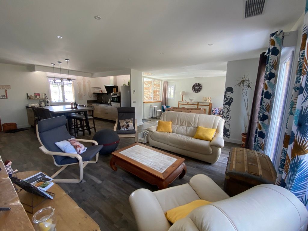 South-facing terrace with large table under a pergola, barbecue and plancha.