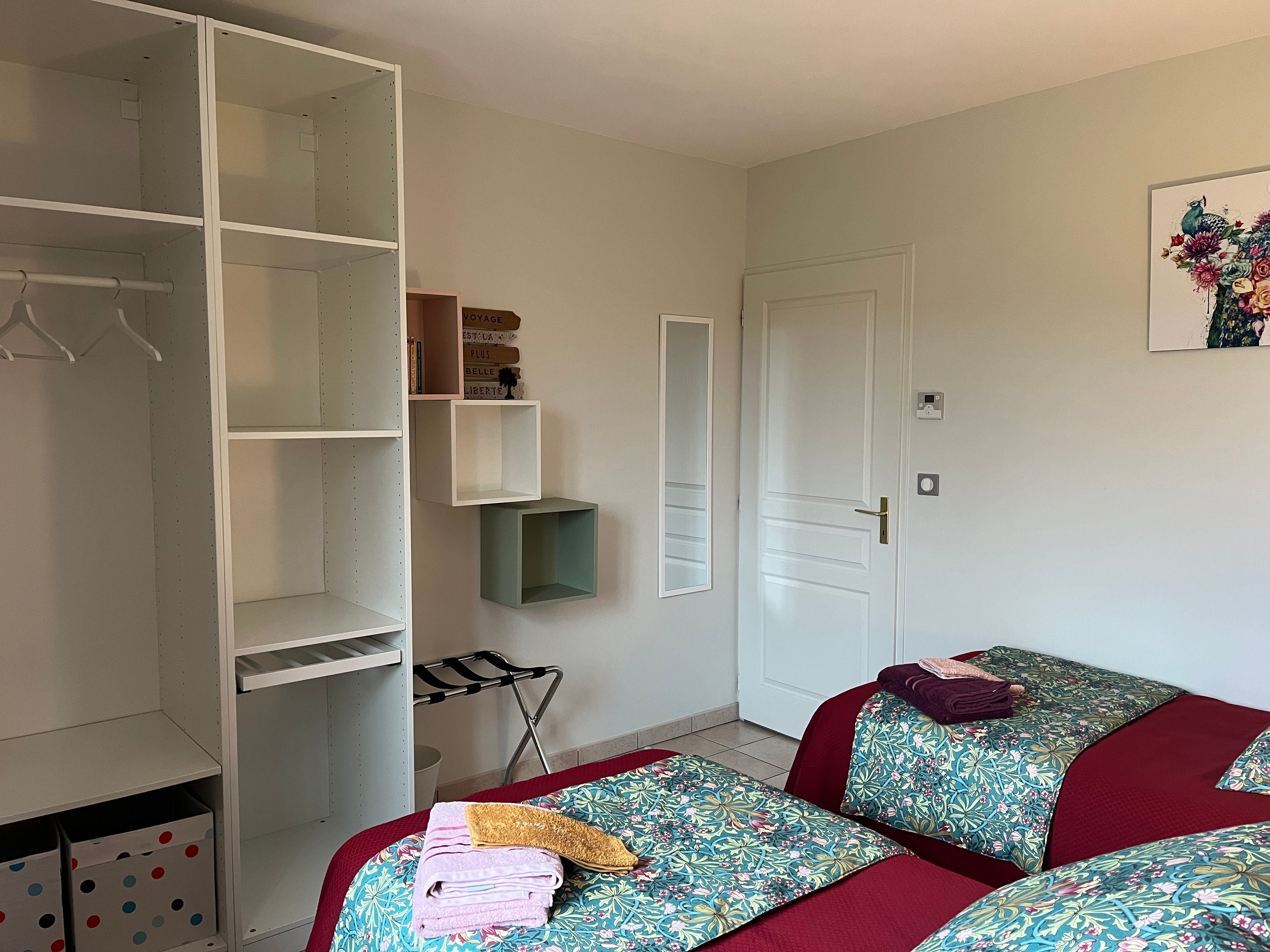 Bedroom 1: 2 single beds, dressing area,
