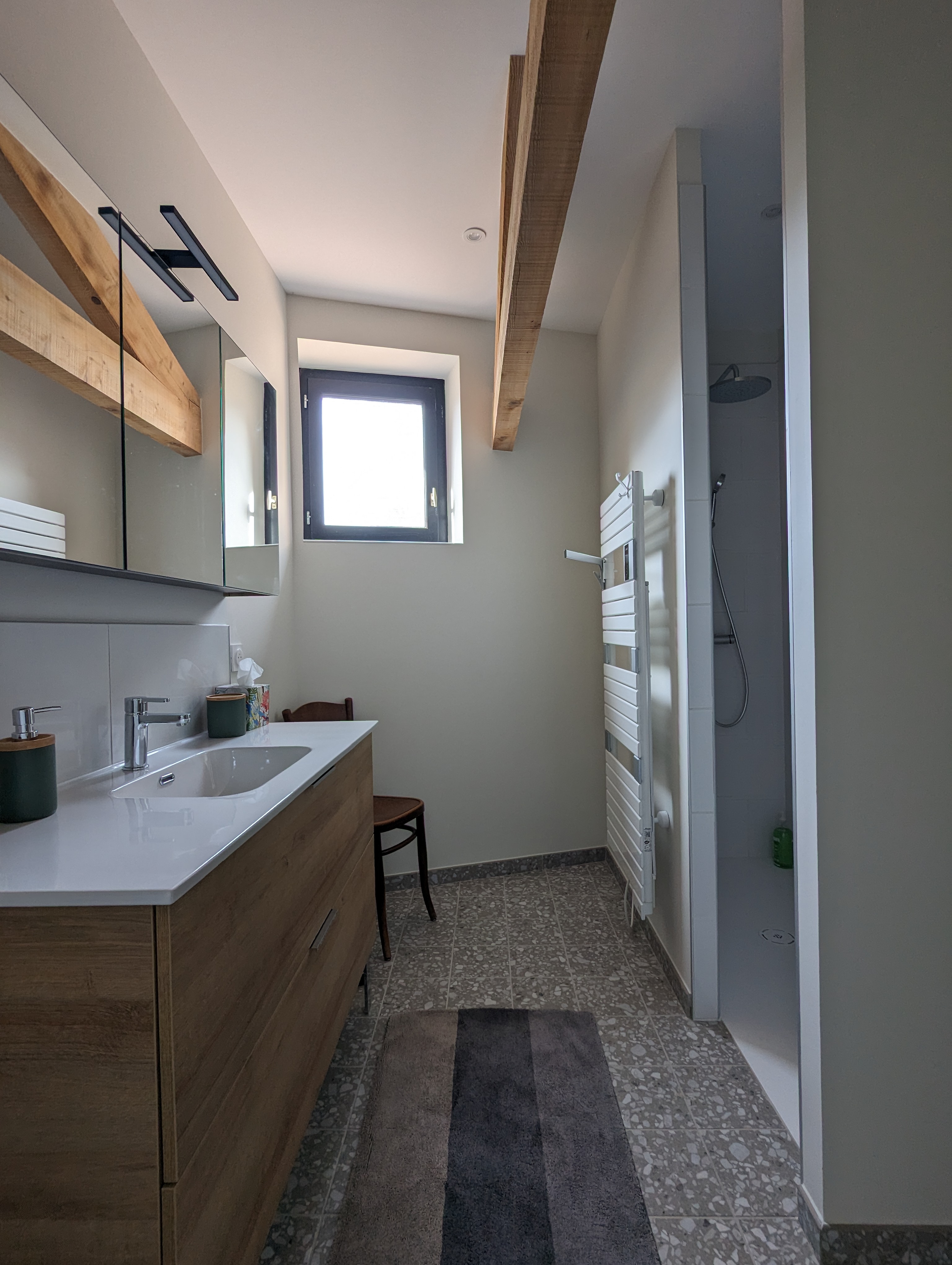– Deux autres chambres (une avec un lit 160 x 200 et une avec deux lits de 90 x 200) partageant une salle d’eau.