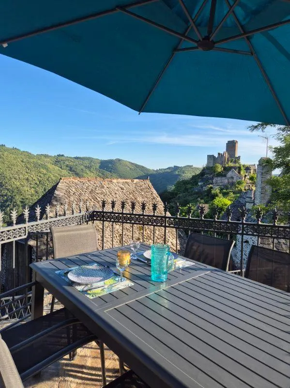 Cette maison traditionnelle ouvre sur une terrasse qui surplombe et offre une vue imprenable sur le Château.