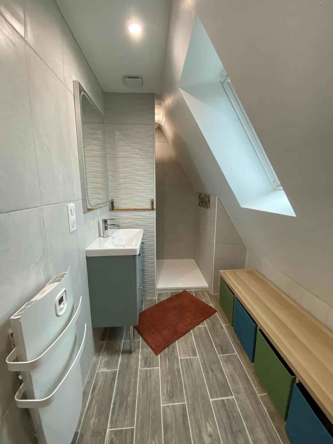 Lorsque l’on entre dans la pièce à vivre aux couleurs chaleureuses, celle-ci est agrémentée d’un poêle à bois où il fera bon se retrouver au retour d’une promenade hivernale. A l’étage, vous trouverez deux chambres lumineuses et coquettes. Les nombreux sentiers de randonnée guideront vos pas à la découverte de ce pays d’eau et de forêts.