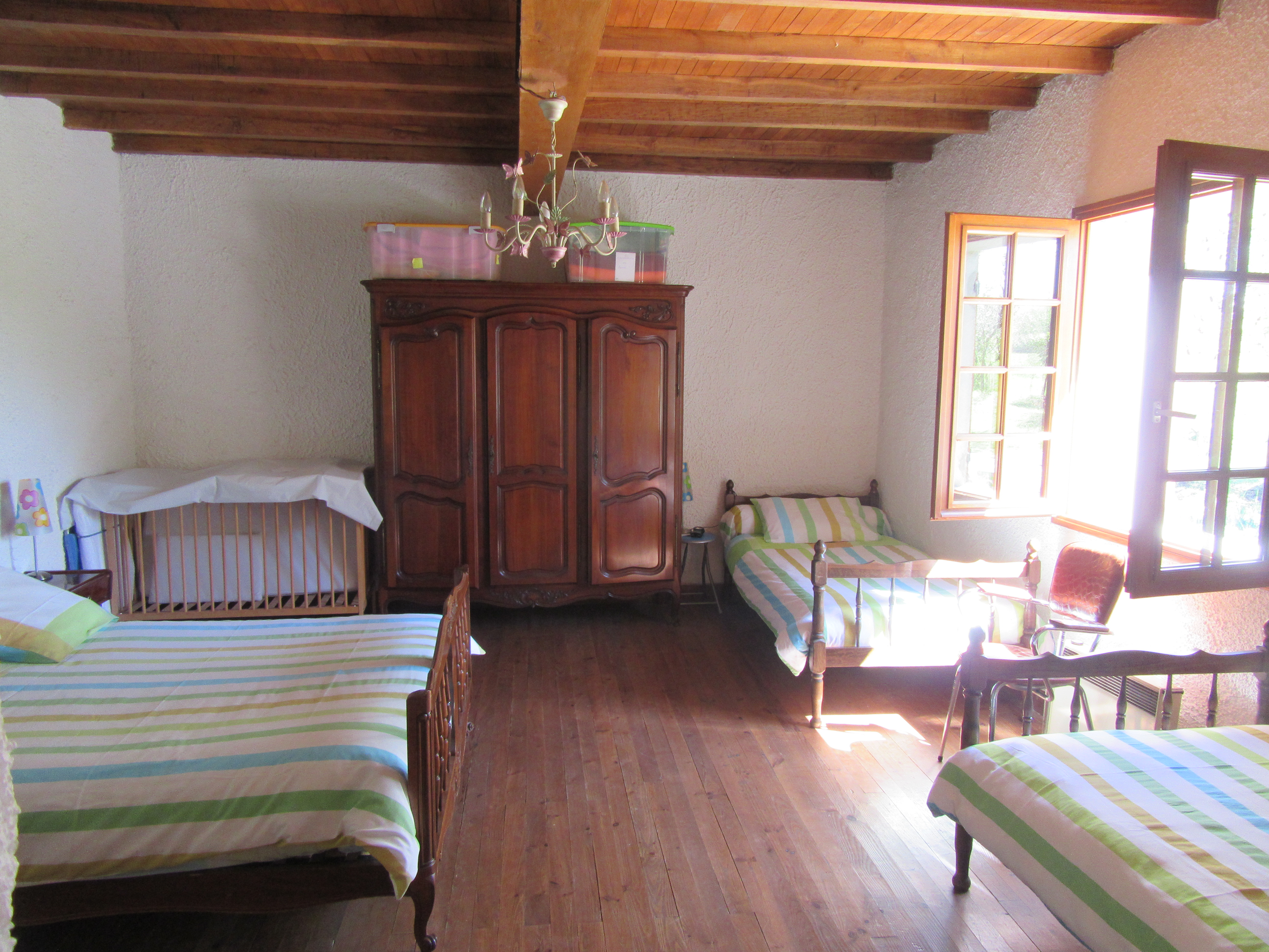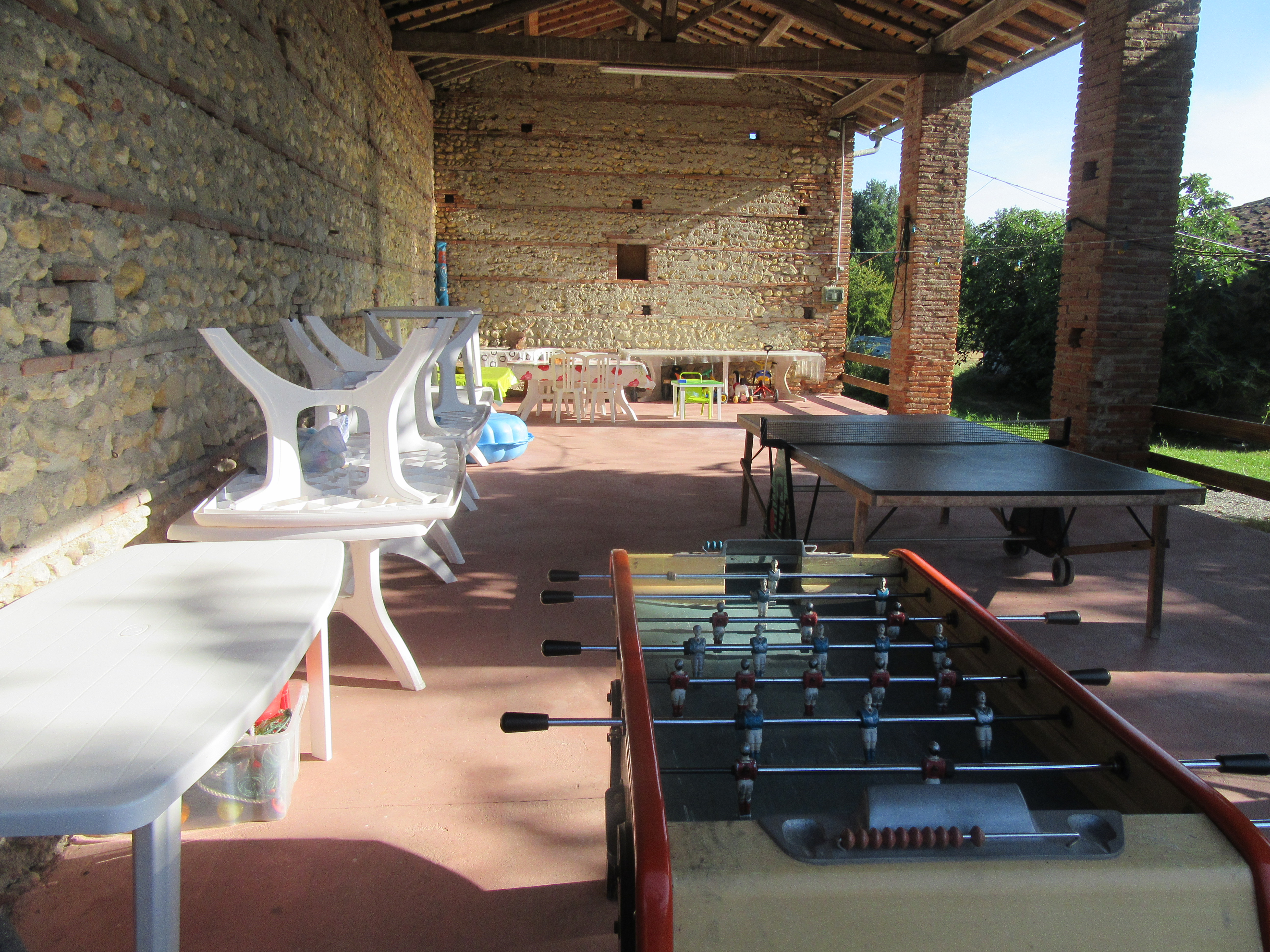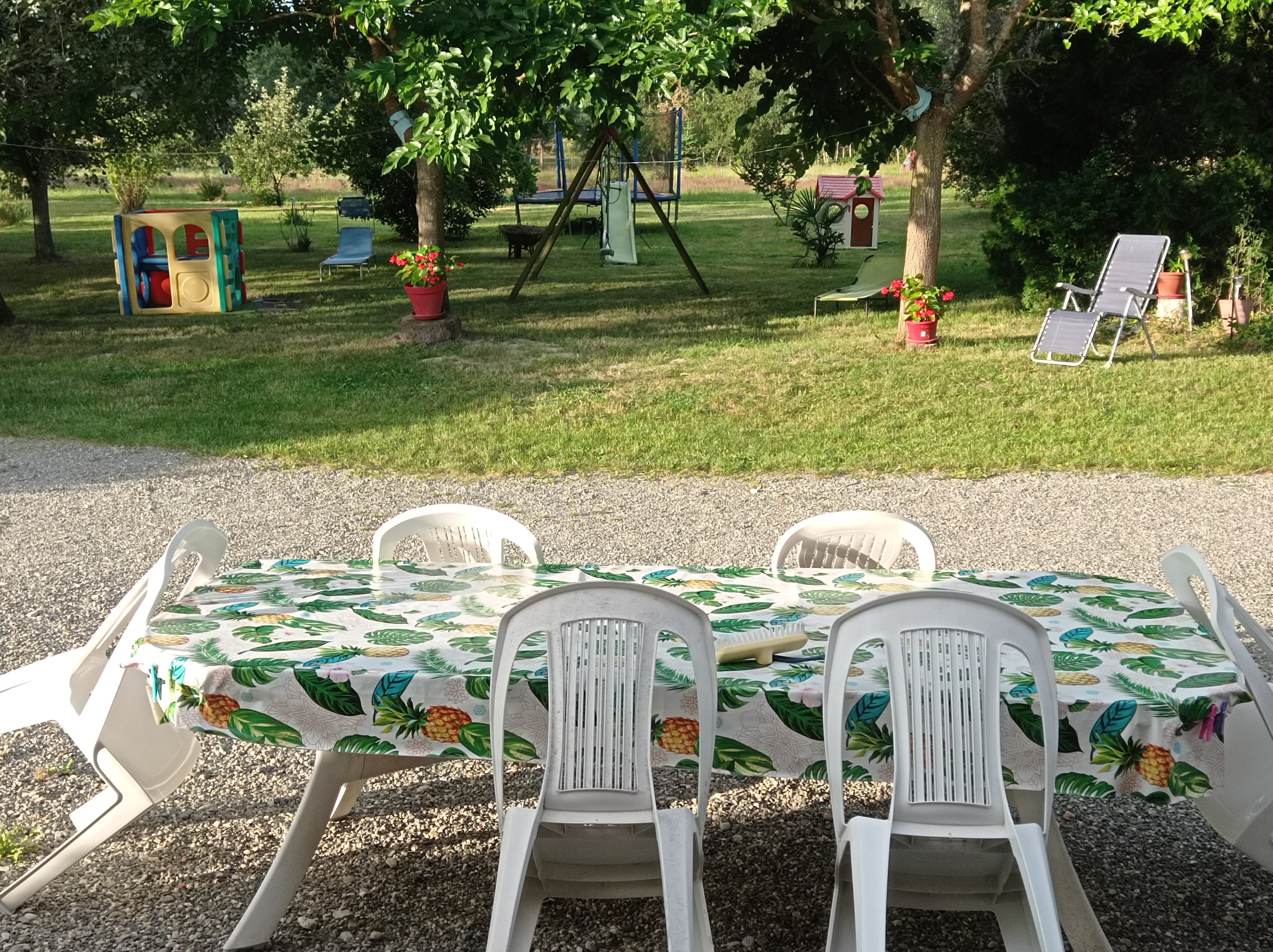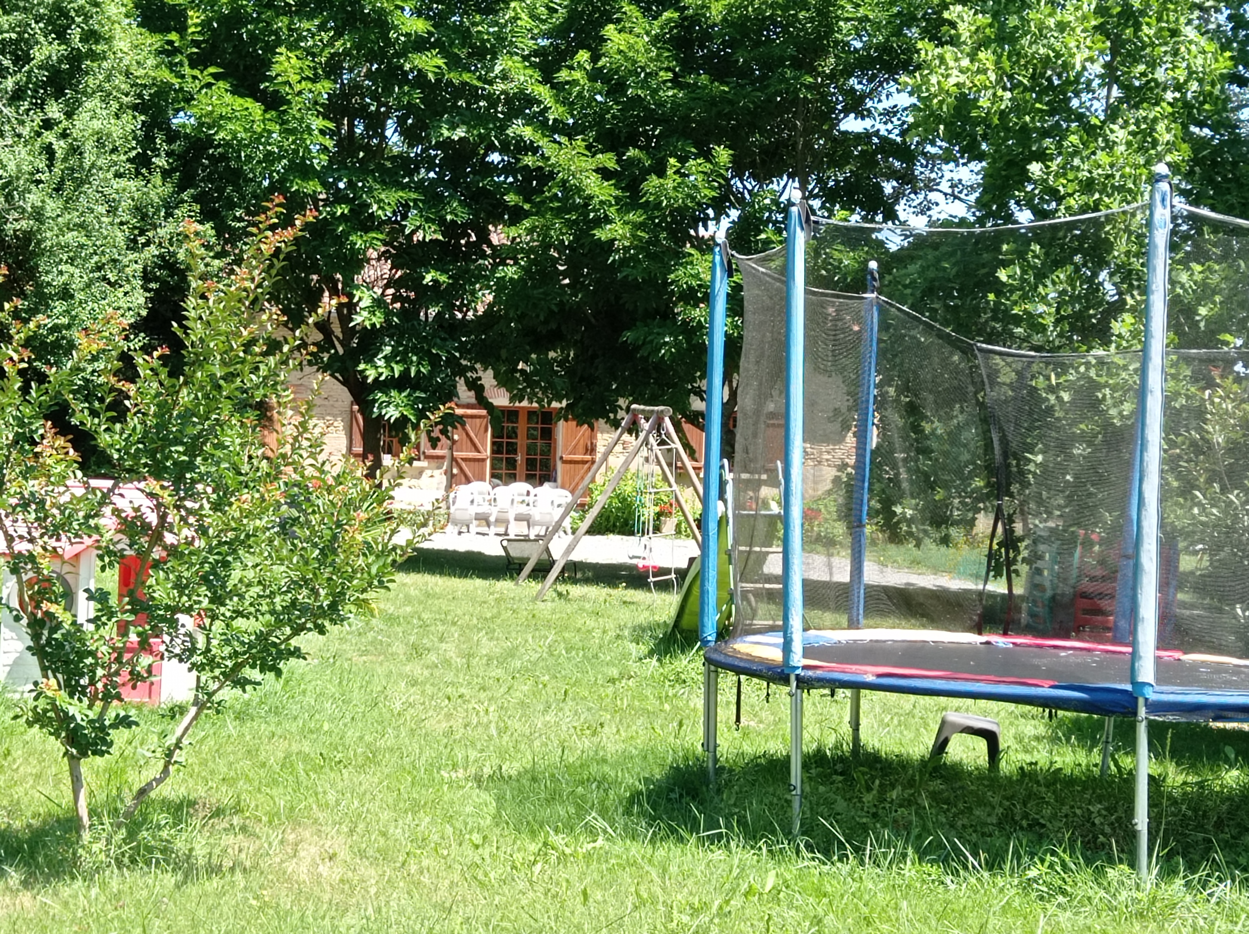Cette ancienne ferme rénovée est située dans un écrin de verdure, avec vue sur la campagne et la forêt environnante, et par temps clair sur les Pyrénées. C’est l’endroit idéal pour les amoureux de la nature ou des grands espaces et à la recherche de calme. C’est aussi un paradis pour les jeunes enfants. Tout est requis pour des vacances reposantes en famille. Des vélos pour petits et grands sont mis à disposition. Les équipements extérieurs: A proximité du village et de tous les services, elle est entourée d’un grand jardin très arboré (10 000m²) avec salon de jardin, barbecue, jeux pour enfants: portique et toboggan, trampoline, pétanque. Un hangar rénové abrite également un babyfoot, un filet de badminton disponible à la demande, une table de tennis de table. A la belle saison, possibilité de repas de famille en journée: tables, chaises et vaisselle disponibles pour accueillir jusqu’à 40 personnes et s’installer sous le hangar.Une terrasse de 30 m2 fermée sur les côtés est située à l’arrière du Gîte (côté Nord)pour pouvoir profiter de l’ombre par temps très chaud. Une pièce supplémentaire récemment restaurée, de 60m², donnant accès à la terrasse est mise à disposition sur demande pour servir de salle de jeux ou salle de repas selon la météo. Les équipements intérieurs du gîte sont un mélange harmonieux de charme et de simplicité avec cuisine équipée, coin salon et cheminée. A votre disposition : deux chambres l’une avec un lit en 140 et 2 lits en 90, l’autre un lit en 140. Une salle de bain avec douche et baignoire, WC séparés. Équipement pour bébé à disposition : lit bébé, transat, jouets premier âge (trotteurs, légos). Pour votre confort: Fourniture du linge de maison (draps et inge de toilette) à partir de 4 nuits de location. En période froide, la consommation électrique pour le chauffage est en supplément : 6€/nuit pour les courts séjours ou calculée au réel pour les longs séjours. Forfait ménage 50€ proposé aux locataires qui ne souhaitent pas faire le ménage à leur départ (le préciser à la réservation ou à l’arrivée). Les Tarifs annoncés sont sur la base de 4 personnes (au delà, prévoir 10€