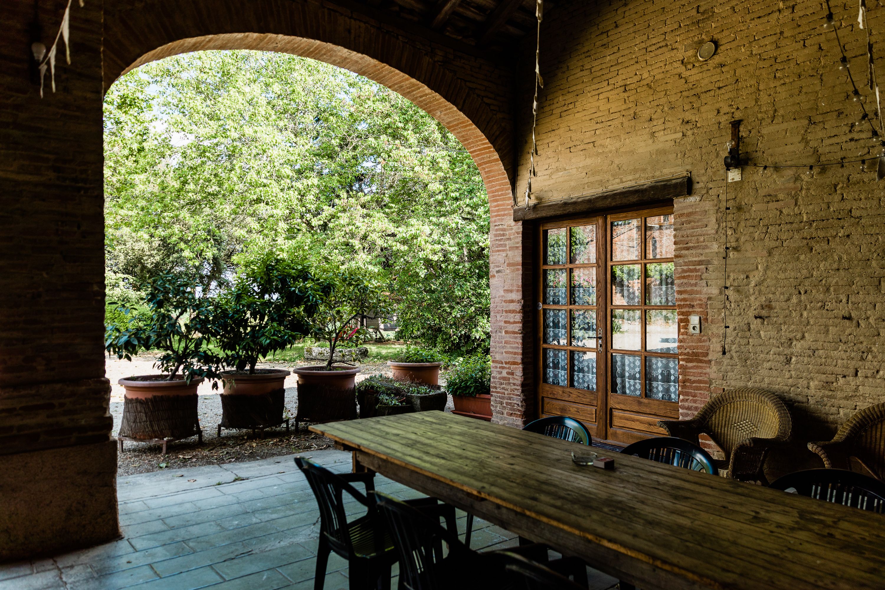 Vom Weltraum innen und außen, der Wunsch, unter dieser hervorragenden Veranda in rohem Land mit Gartenmöbeln und Grillen zu ruhen. Die alte Farm ist groß und ein 3. Haus hat gerade ihren Platz gefunden.