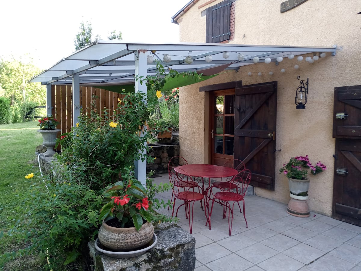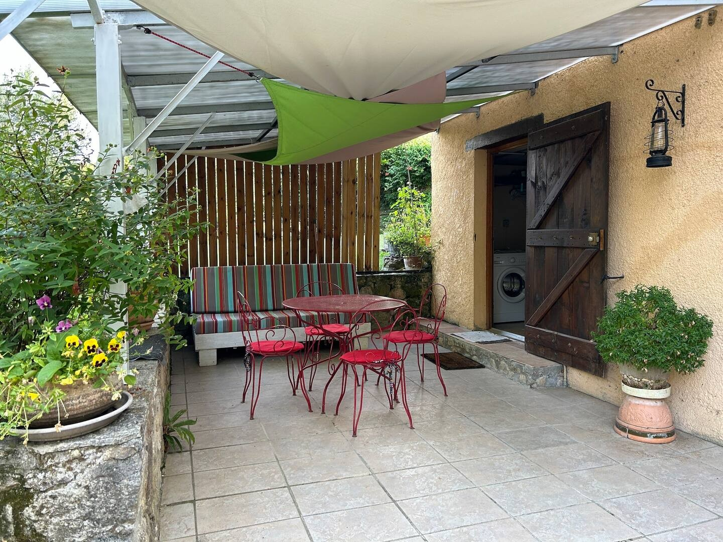Terrasse partiellement couverte, jardin clos, salon de jardin et barbecue pour des moments conviviaux