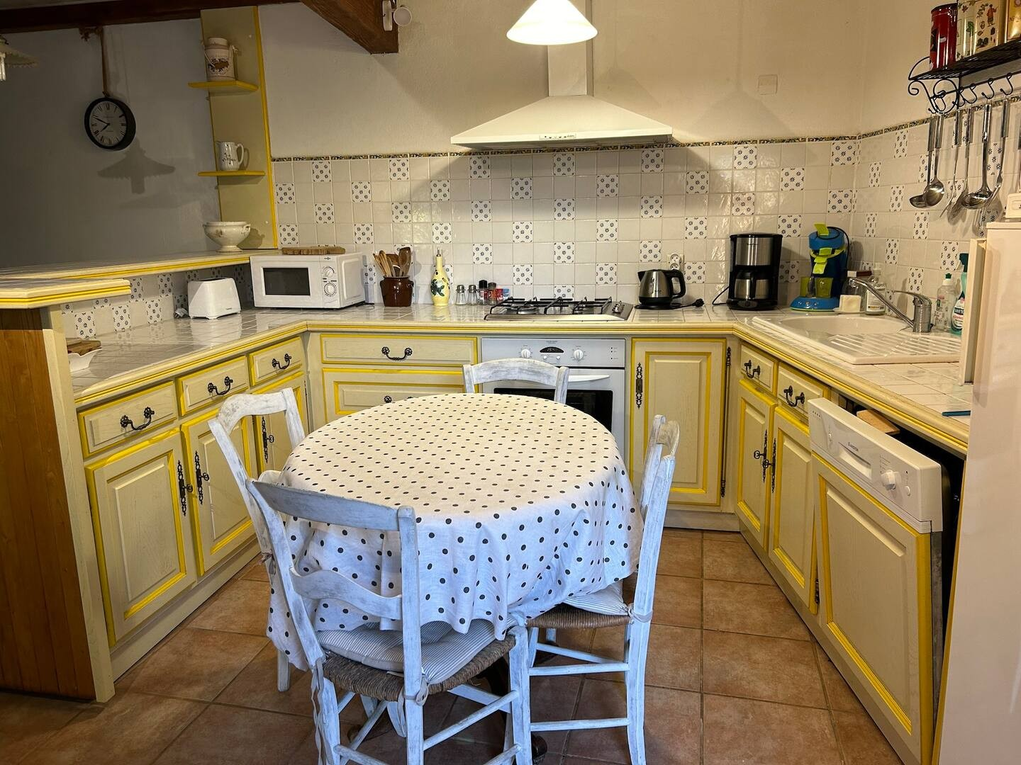 Rez-de-chaussée : cuisine équipée, coin salon avec canapé convertible (2 personnes), et local de rangement