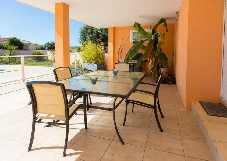 Outside, the enclosed private garden offers space for play and relaxation. The covered terrace naturally extends summer evenings around shared meals. The private swimming pool (12 x 6 m, depth 1.10 m to 2 m – open from May 10 to late September), secured by a fence, quickly becomes the favourite gathering spot; a pool house with shower and WC adds extra convenience. Children can enjoy the slides.