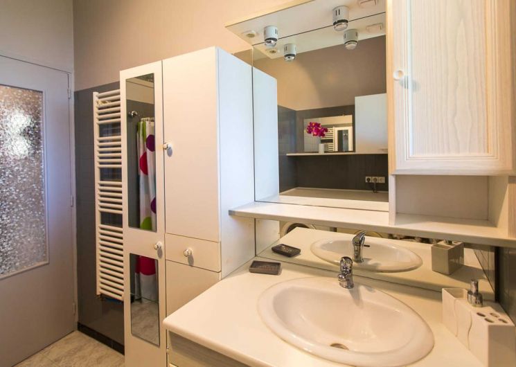 The house, detached and peacefully set, offers generous spaces ideal for family holidays or stays with friends. On the ground floor, the large living area includes a fully equipped open-plan kitchen (oven, microwave, hob, refrigerator, freezer, dishwasher) and a spacious dining area facing outside with direct access to the terrace and swimming pool. The lounge, set a few steps lower, creates a cosy and welcoming space with fireplace, TV and table football. A shower room with washing machine, tumble dryer and WC completes this level.
