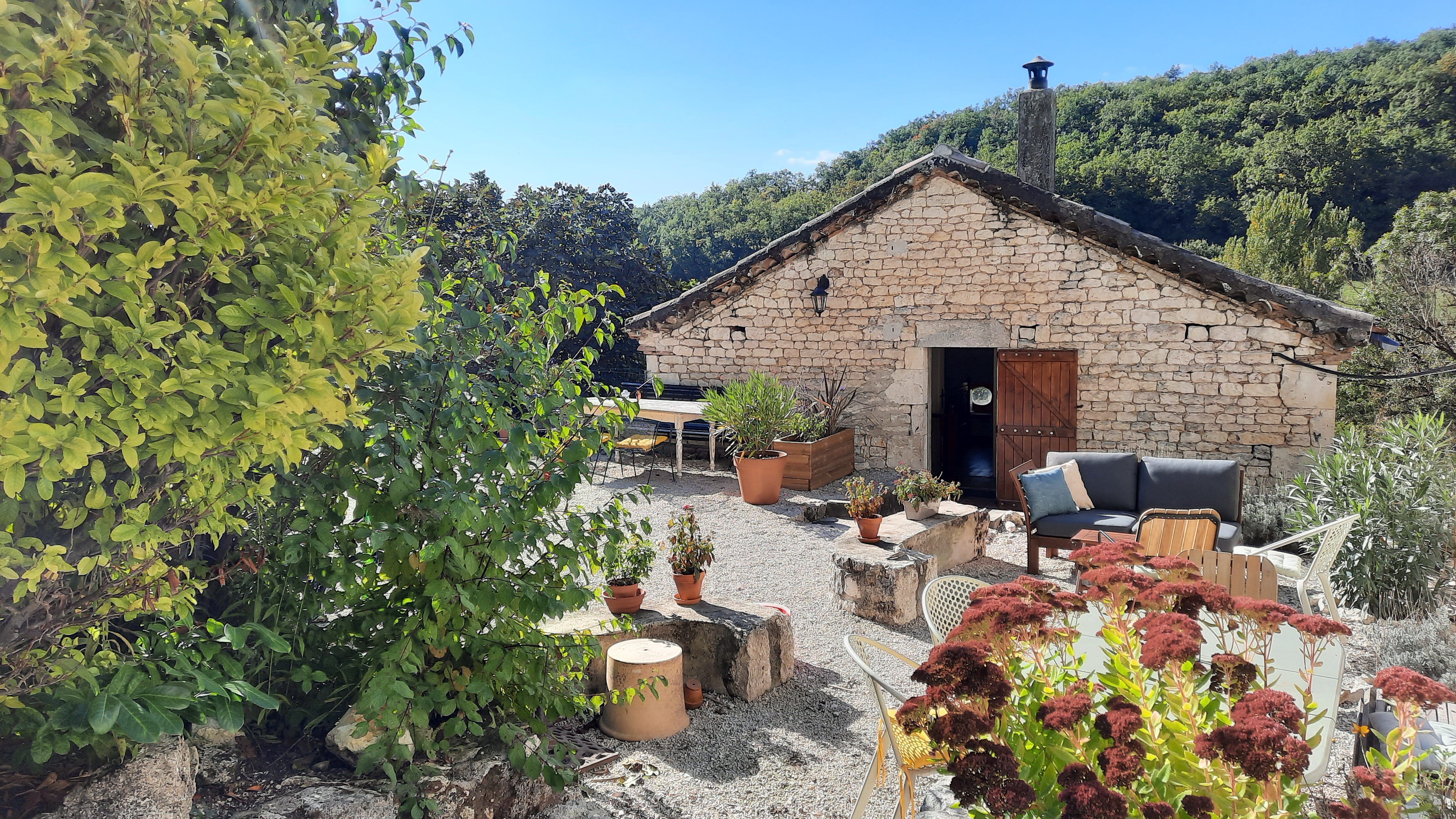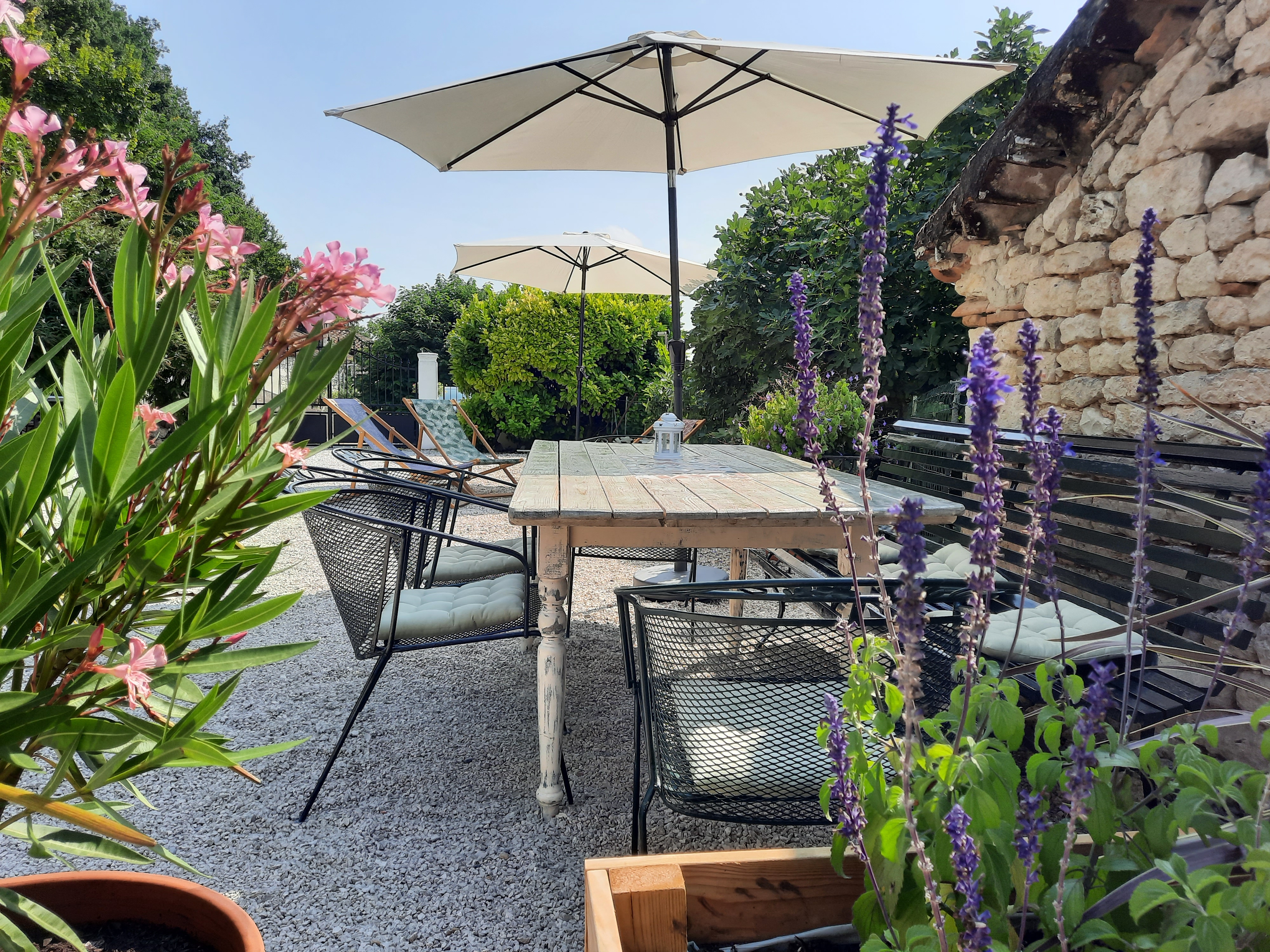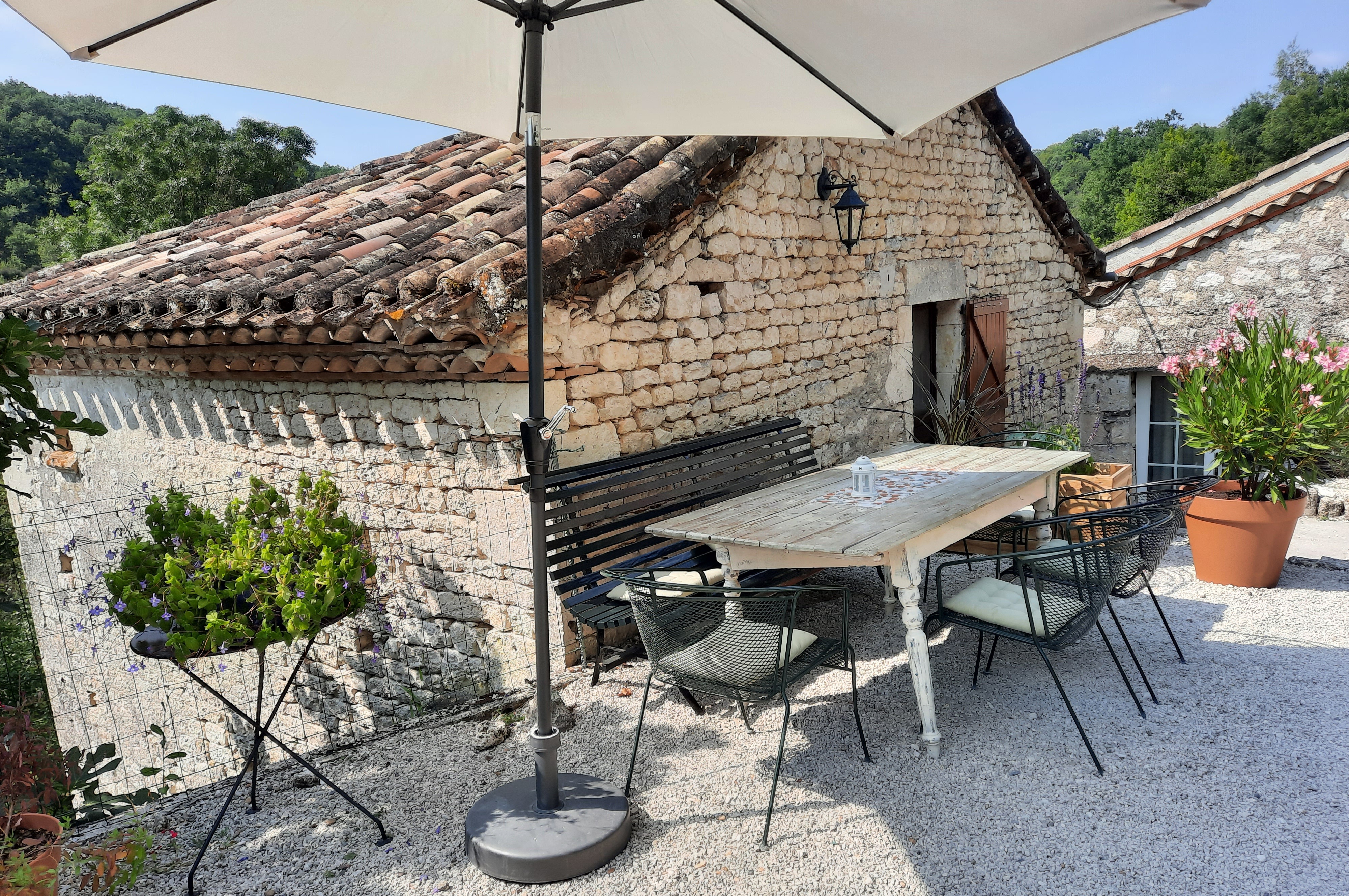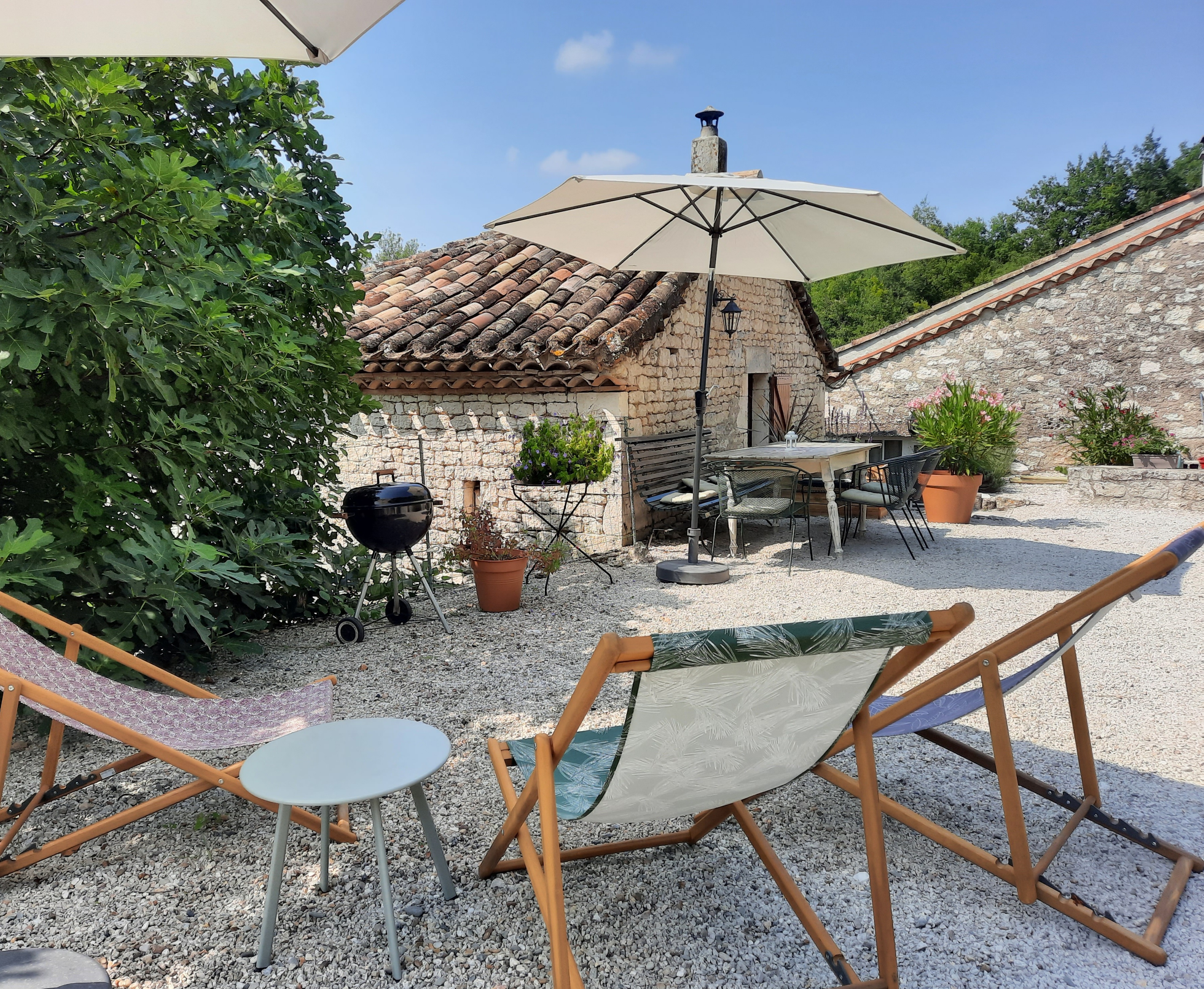 The gîte Le Tournesol is situated on the small estate of Touffailles, between the green hills and sunflower fields in the south of France. The estate consists of 3 holiday houses and the owners’ house. It is particularly suitable for children. There is a beautiful heated swimming pool of 5×10 metres on site and many walking and cycling paths nearby. From the gîte you can walk to the lower village where there is a boulangerie.