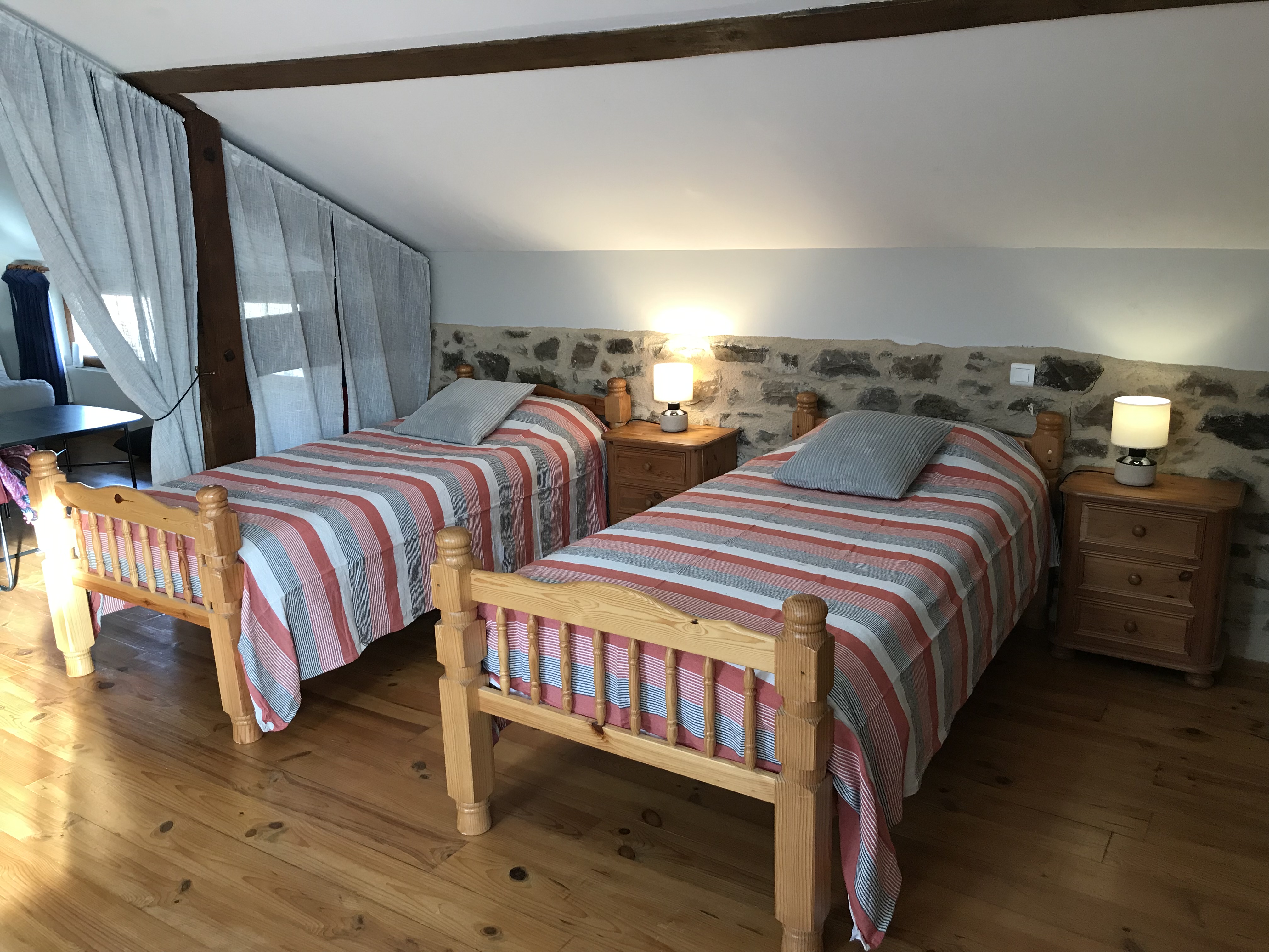 This gîte has 3 bedrooms (master suite on the ground floor, 2 bedrooms and 1 bathroom on the first floor) and a capacity of 7 people,