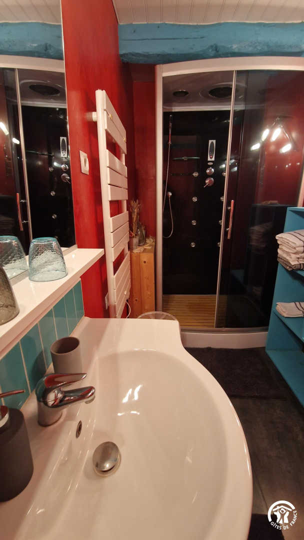 – Salle d’eau avec une grande douche avec éclairage et musique. Les WC sont indépendants.
