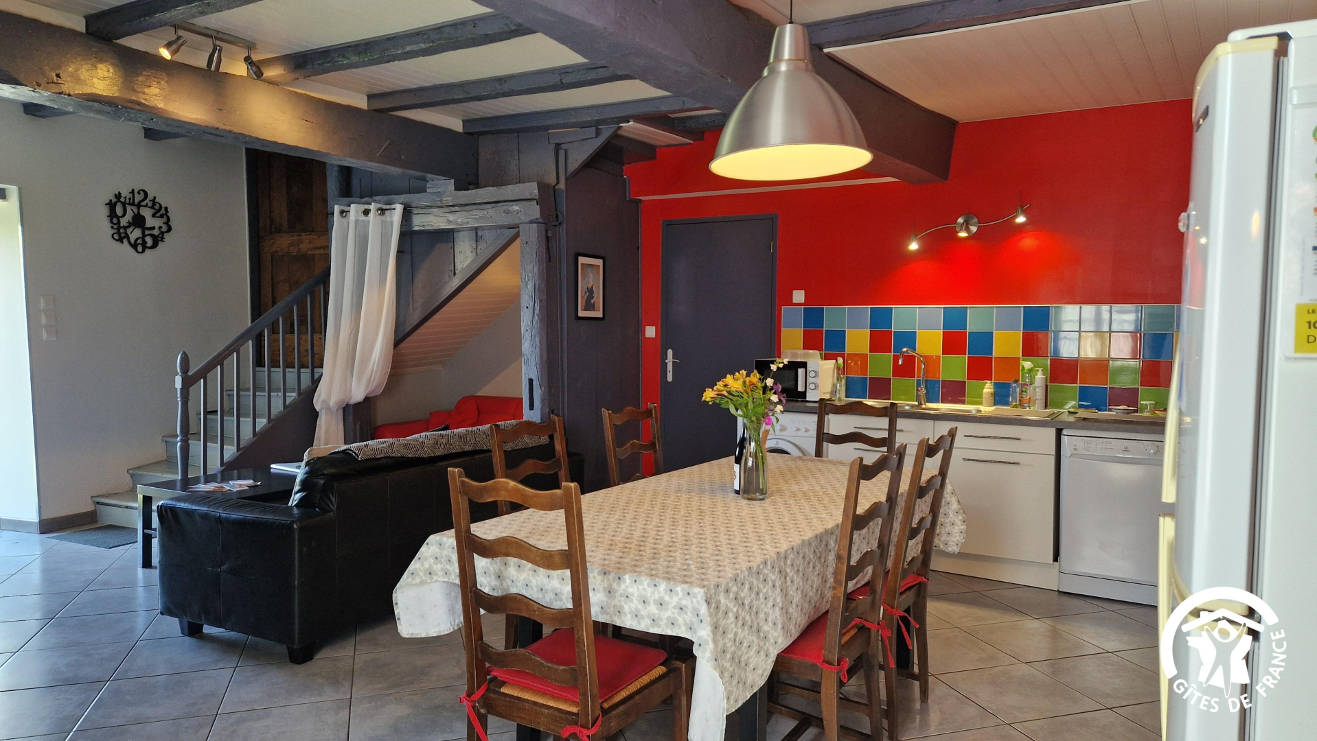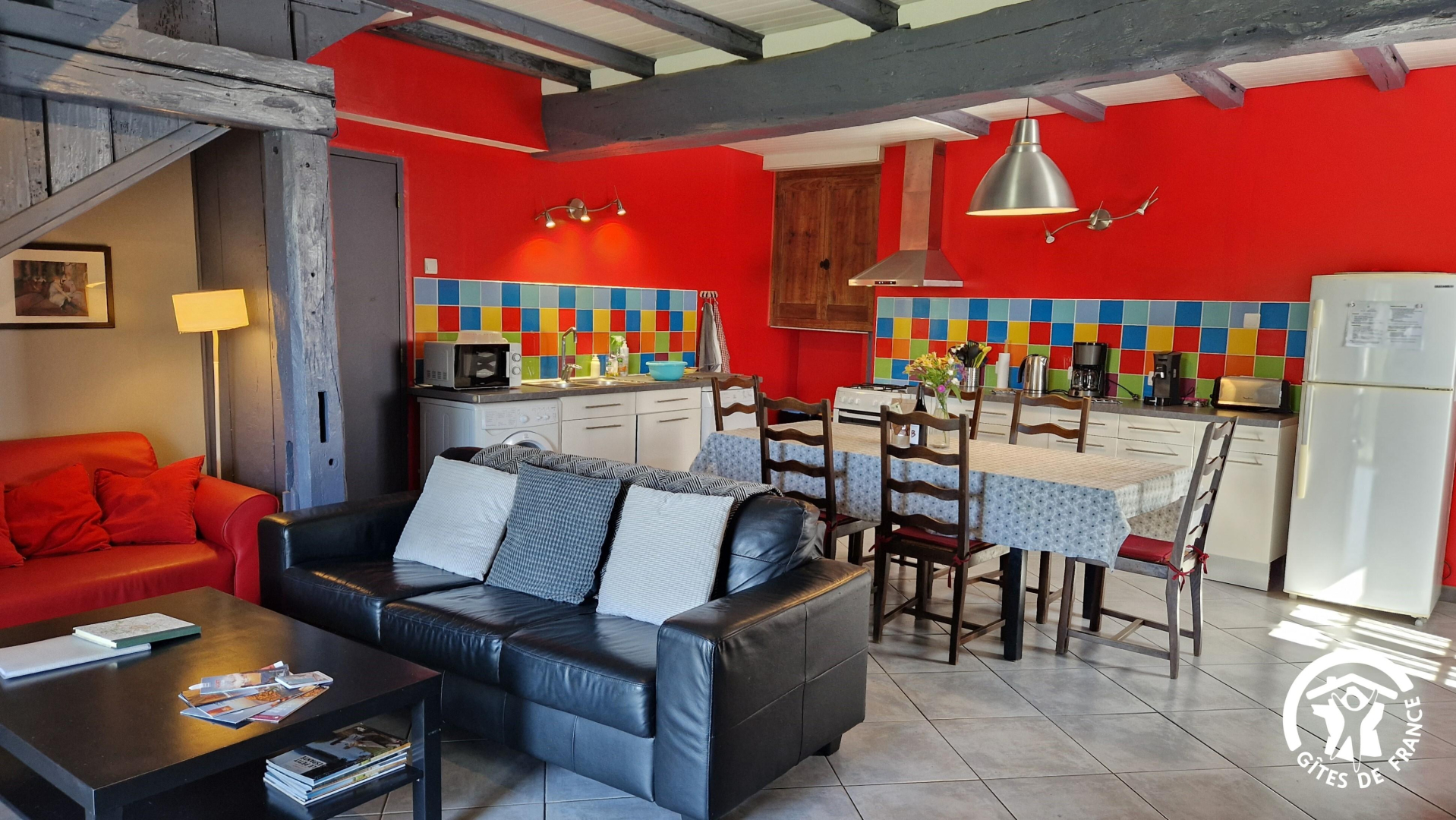 – Dans l’espace salon, vous profiterez de canapés confortables, fauteuil club, TV avec lecteur DVD Blu-ray, chaîne hi-fi, nombreux livres et documents sur la région. L’hiver, une chaufferie pour le linge.